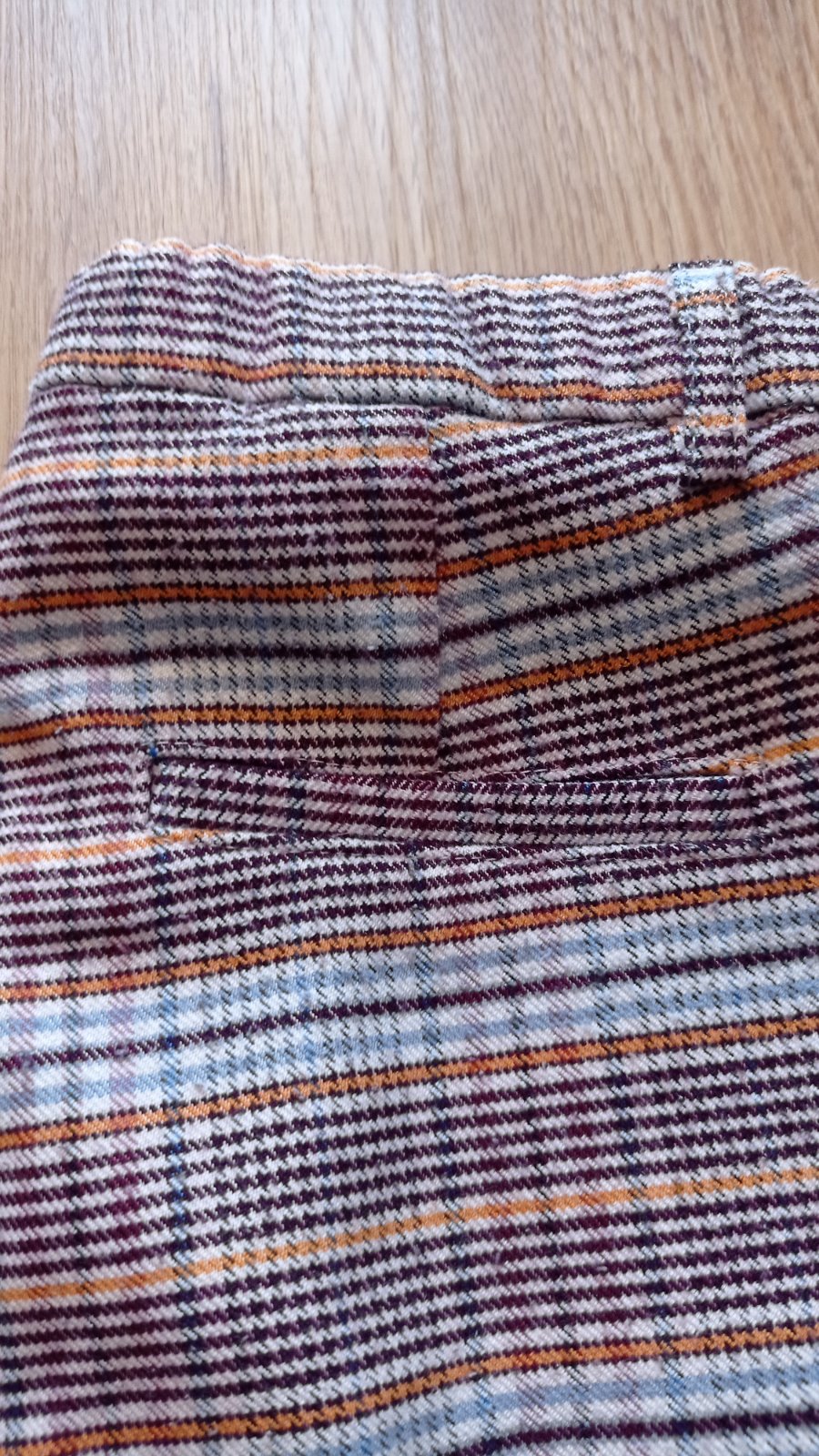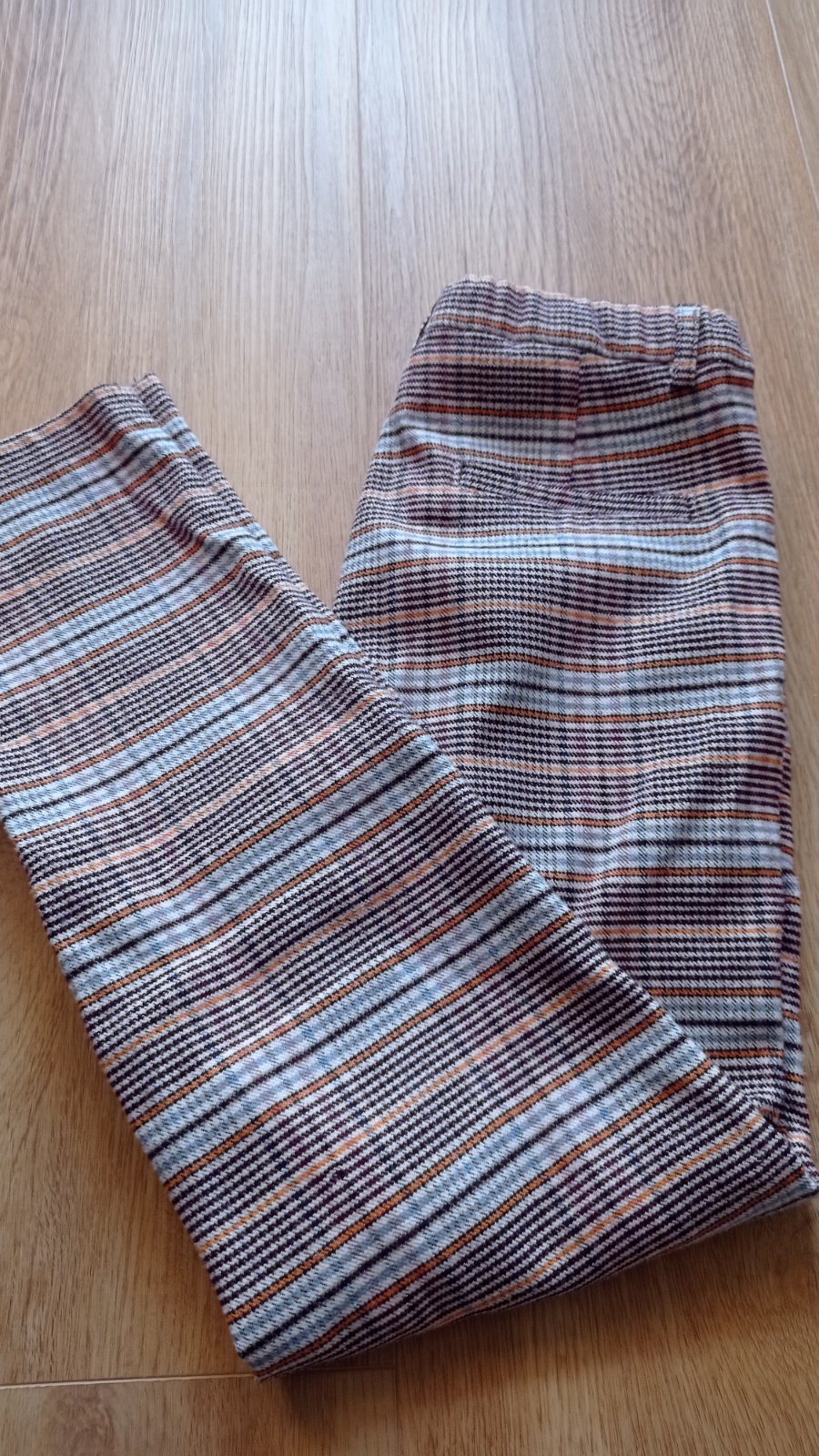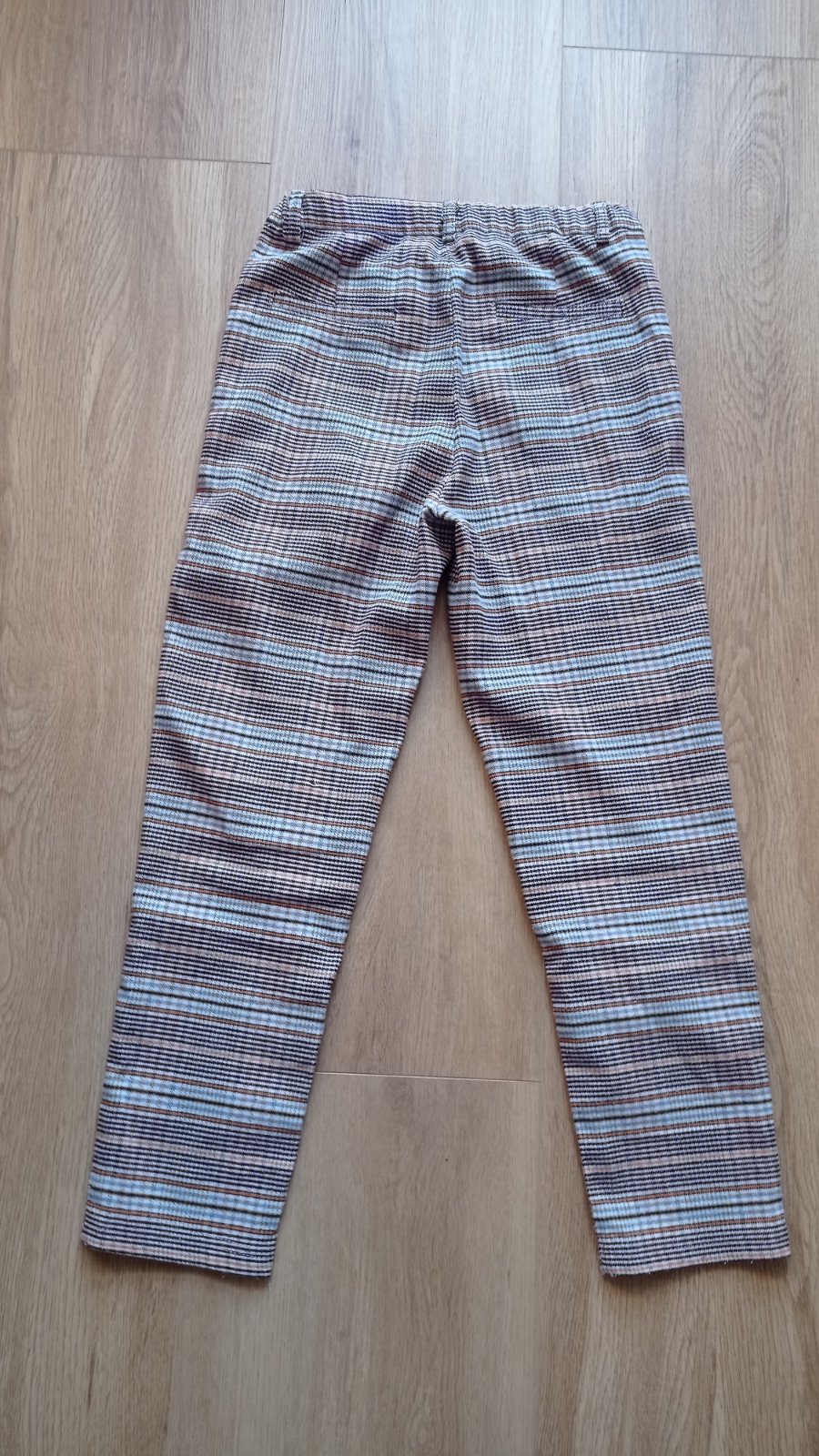 Skvelé kárované nohavice mrkvového strihu, pás je nastaviteľný, vpredu vrecká, vzadu FAKE vrecká. Nenašla som poškodenie. Vzhľadom k materiálu môžu byť minižmolky..ale reálne som si ich nevšimla. Miery viď foto. Sú perfektné pre malé parádnice. Odporúčam.