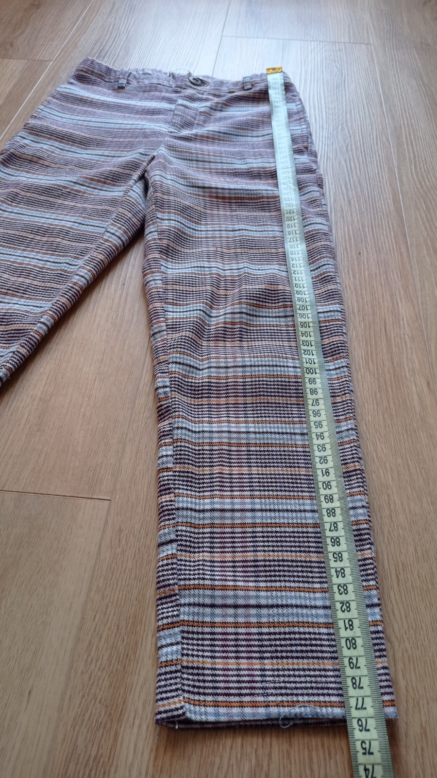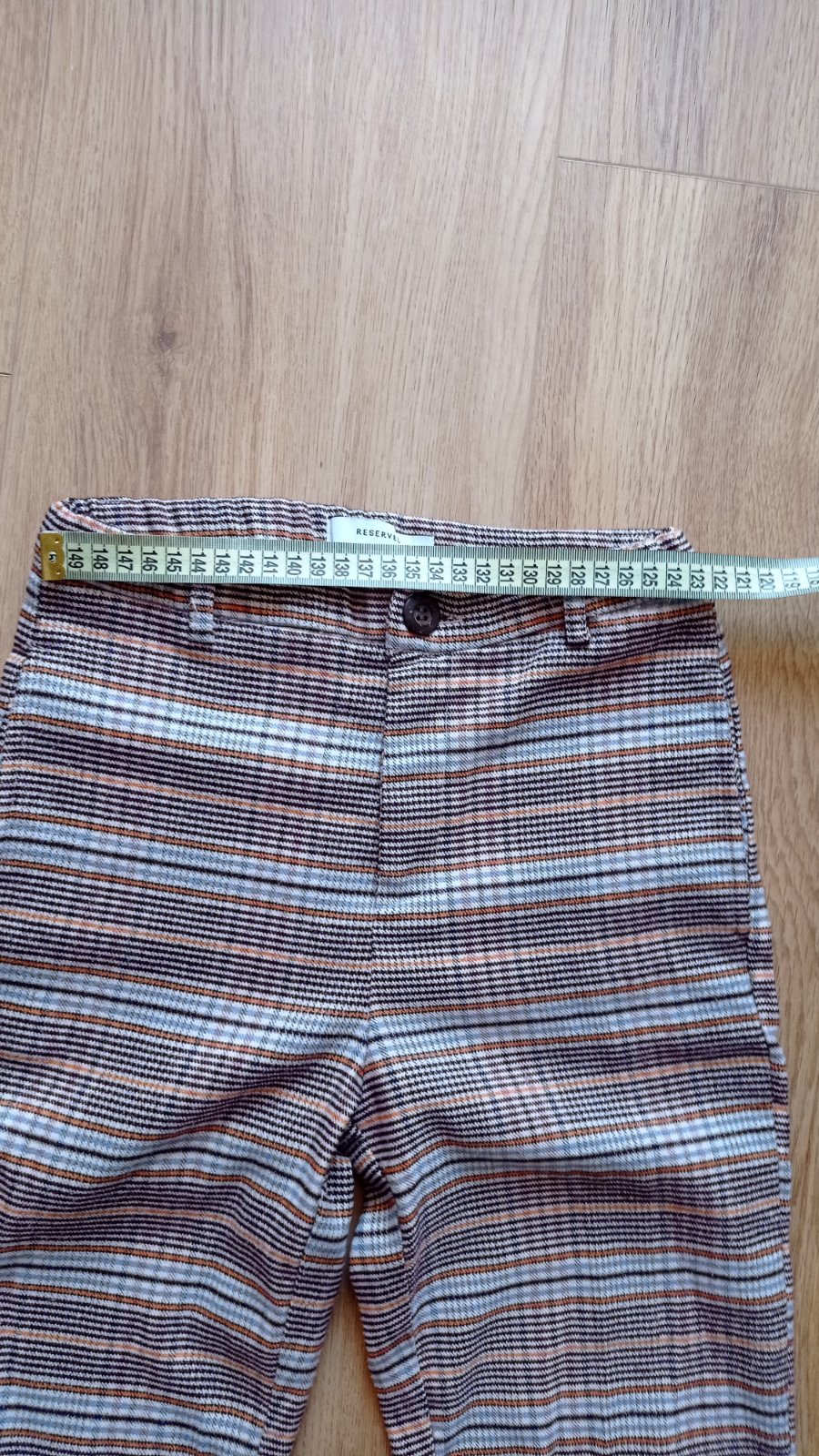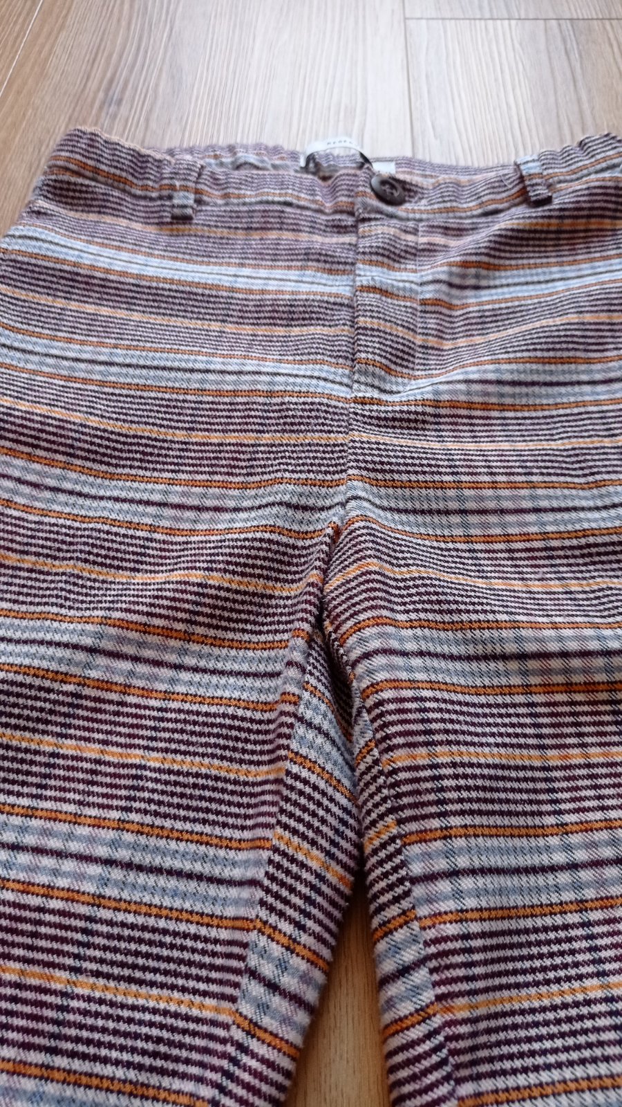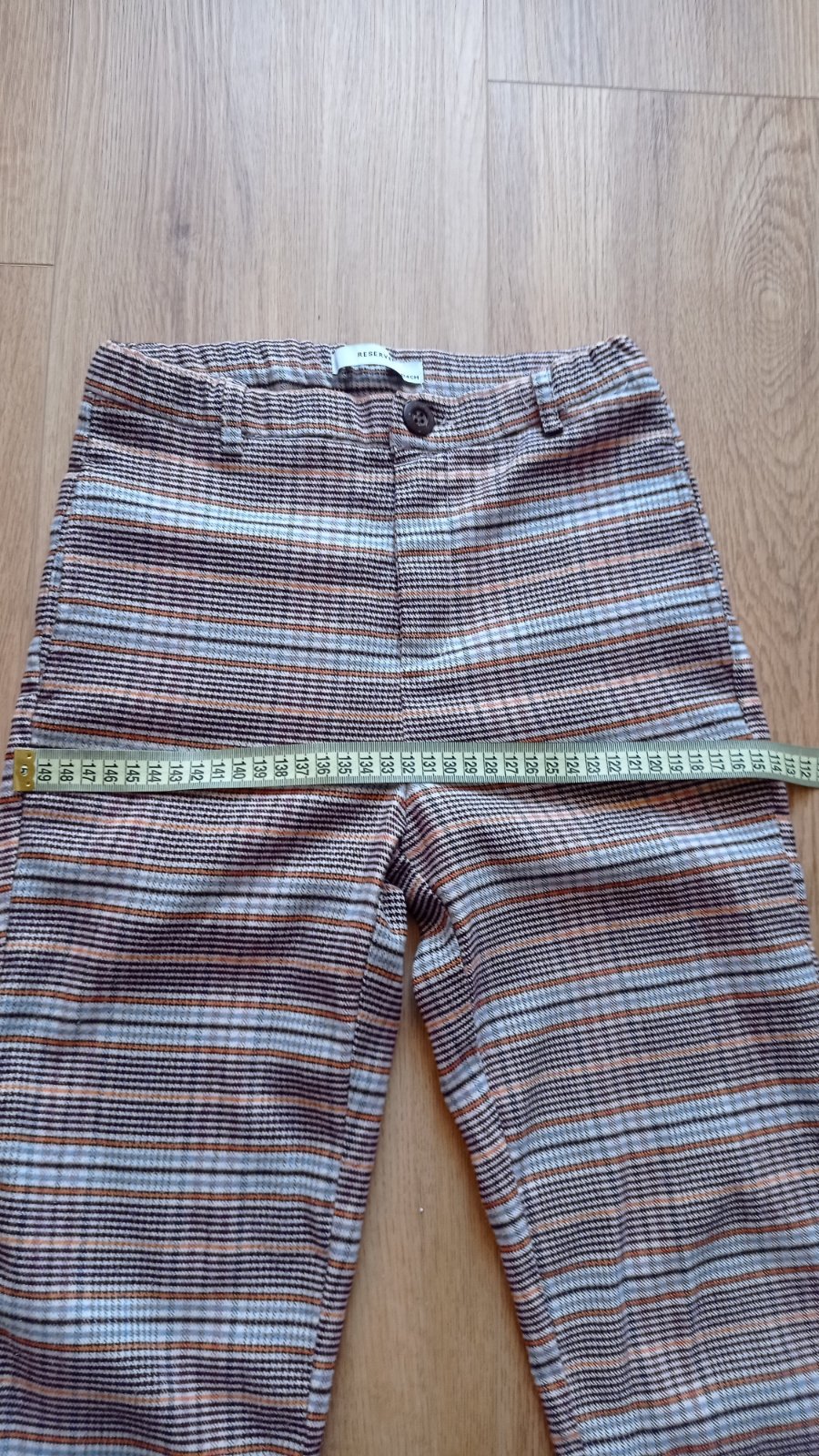 Skvelé kárované nohavice mrkvového strihu, pás je nastaviteľný, vpredu vrecká, vzadu FAKE vrecká. Nenašla som poškodenie. Vzhľadom k materiálu môžu byť minižmolky..ale reálne som si ich nevšimla. Miery viď foto. Sú perfektné pre malé parádnice. Odporúčam.