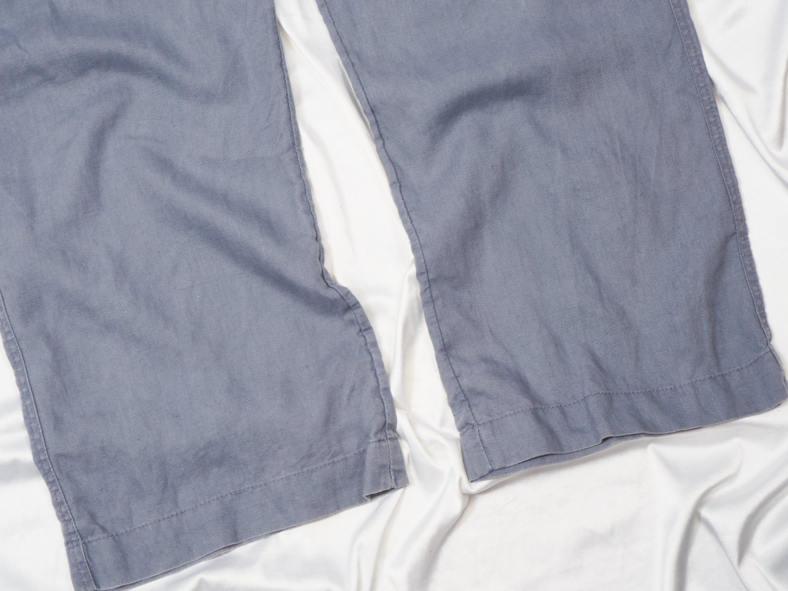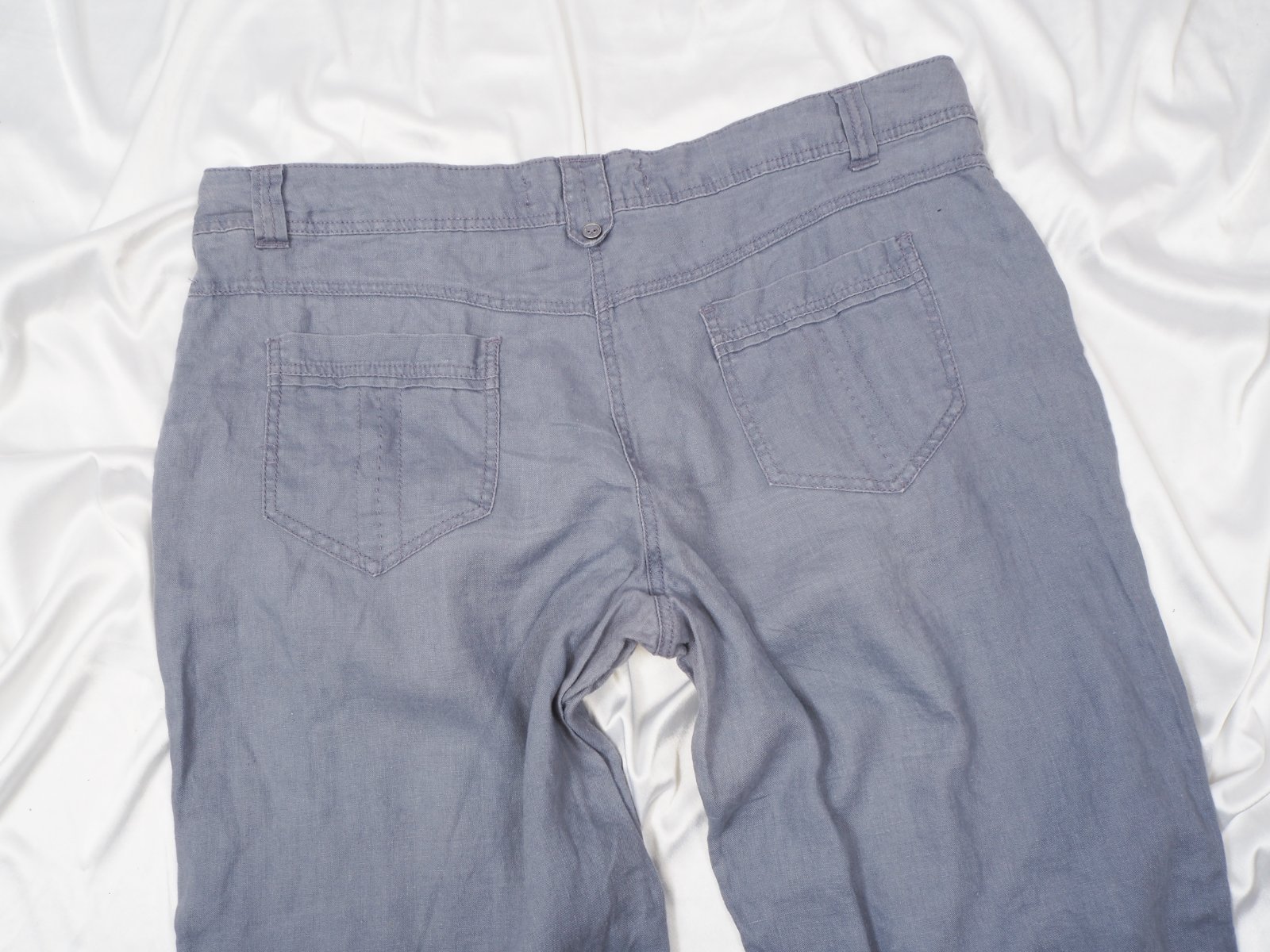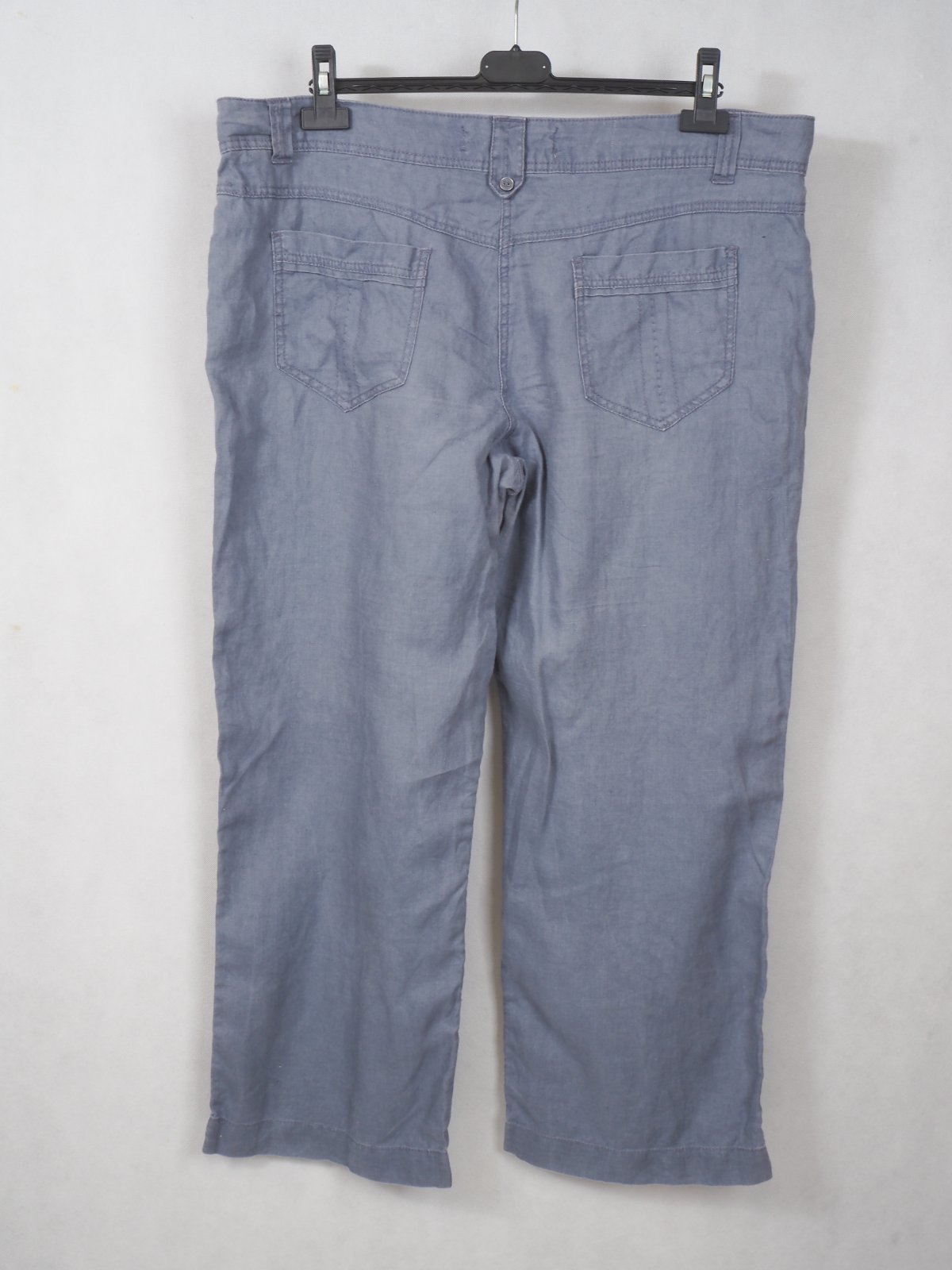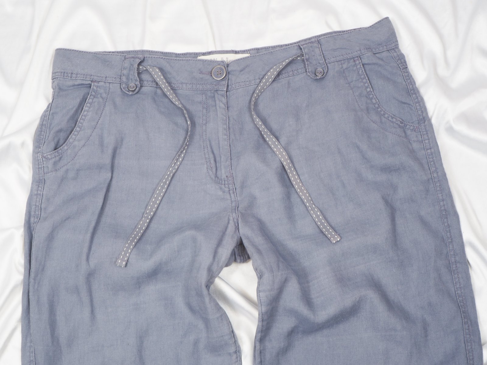 Kvalitné bledomodrosivé nohavice, zapínanie na zips a gombík, 100% ľan, super stav.