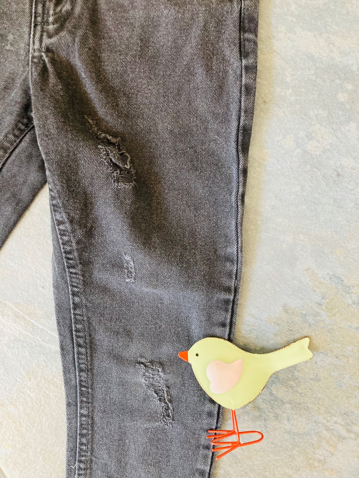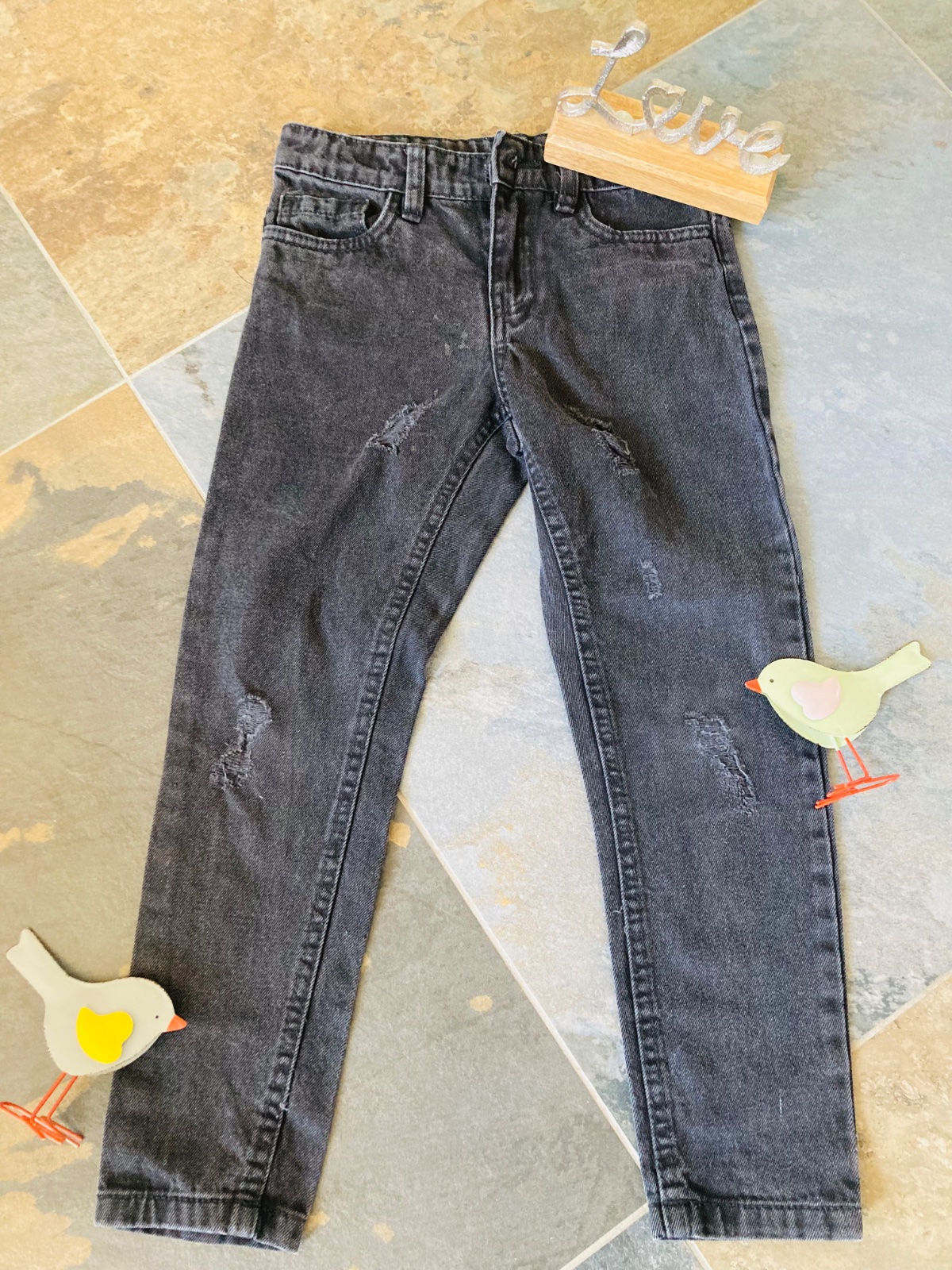 Ani raz neoblecene čierne rifle pre dievcatko. Mäkké, strečove. Na pase po oboch stranách sa dajú velkostne prispôsobiť