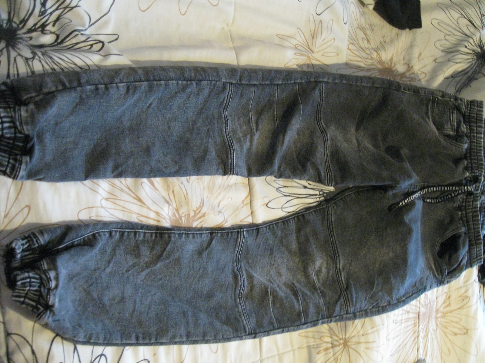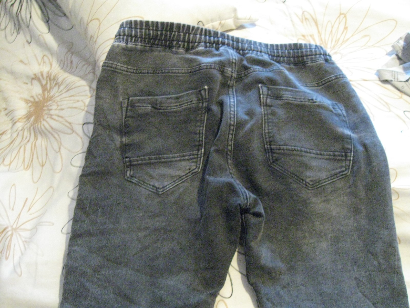 velkost uvedena 36, pas je 42 cm x 2, pas je na gumu + snurka na stiahnutie, spodky su tiez ukoncene na gumu, nosene, ale v dobrom stave, neznackove rifle