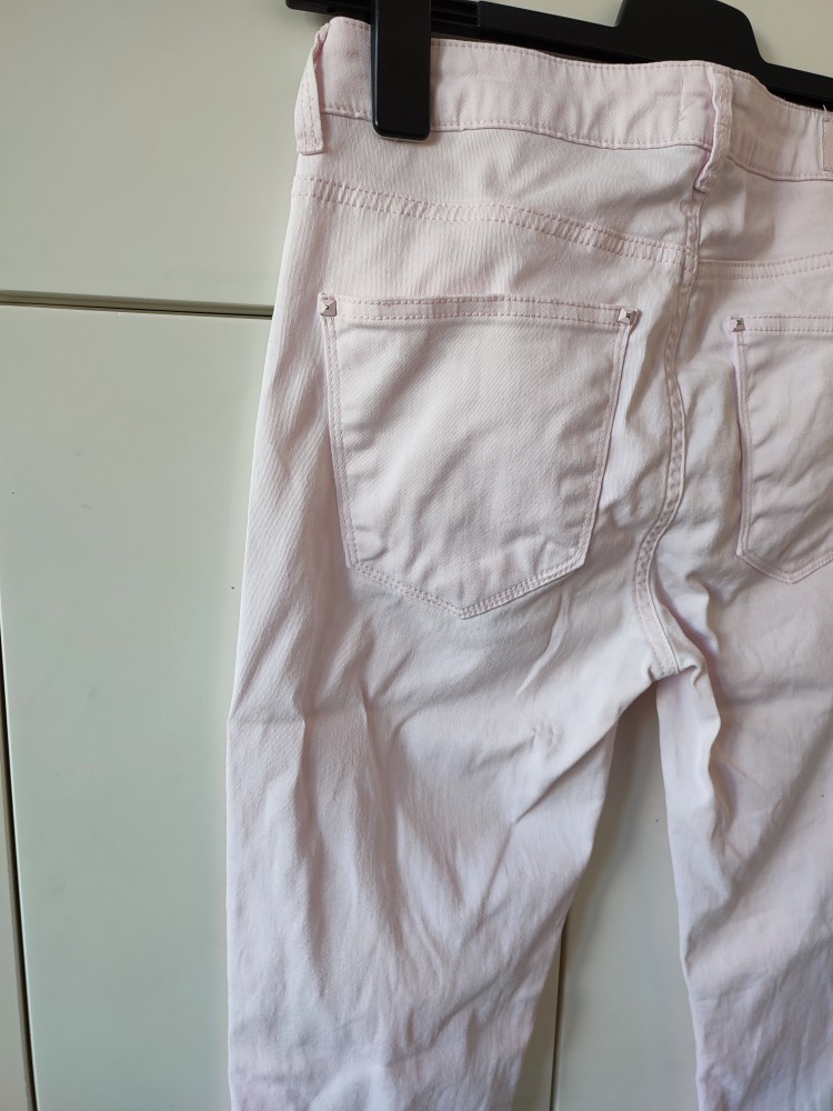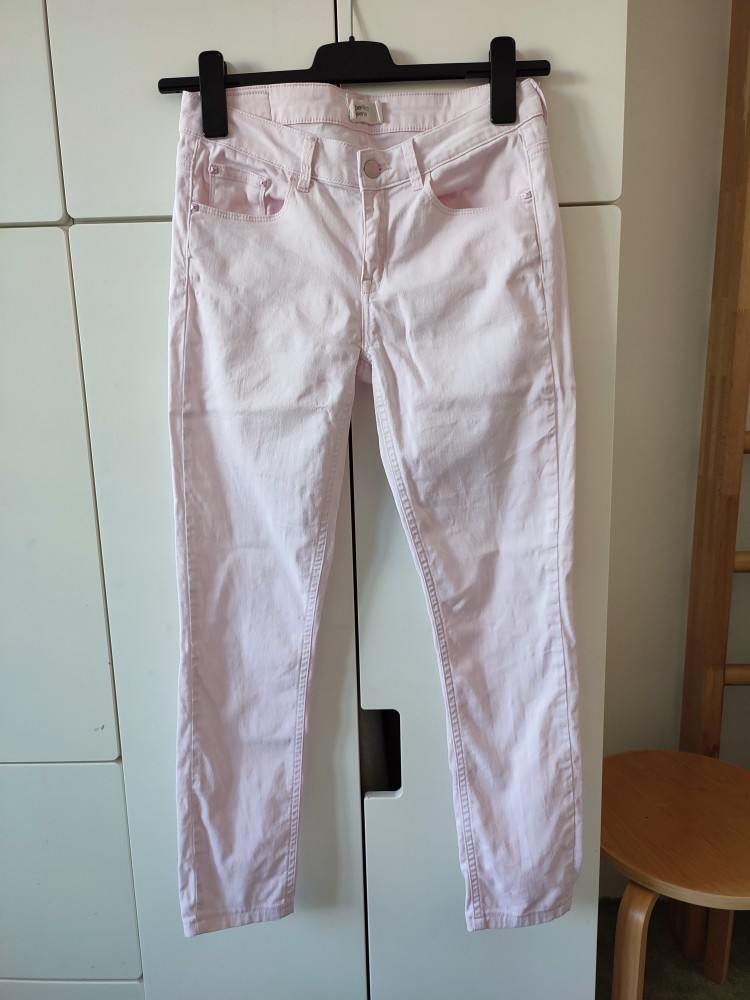 pastelové nohavice, značka Gina Tricot, označené ako "perfect jeans" majú strih ako rifle ale sú z tenšieho bavlneného plátna, nie z rifľoviny. veľkosť písaná 40, podľa mňa sedia na 38. nemajú žiadne poškodenia. super na jar / leto.