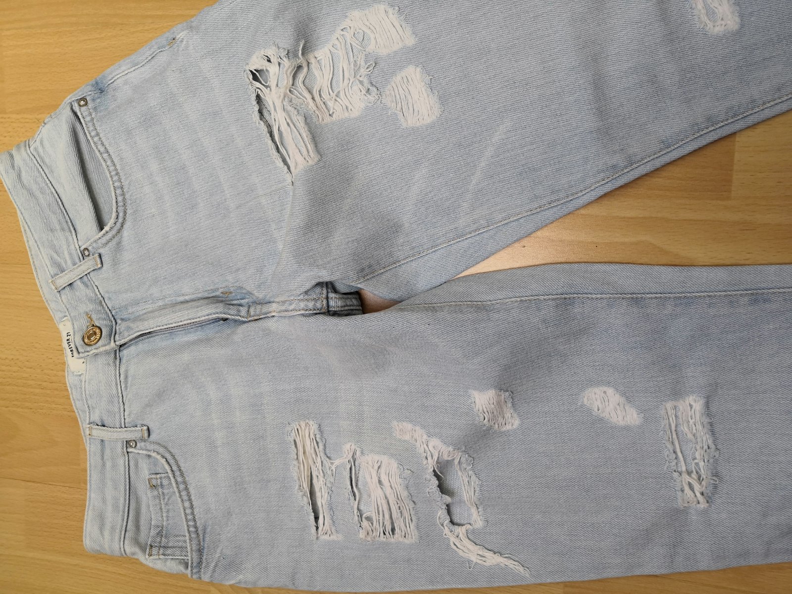 Neelastické, bavlnené rifle. Výborný stav, neušpinené. Pás 2x37 cm, dlzka 91 cm, predny sed 24 cm