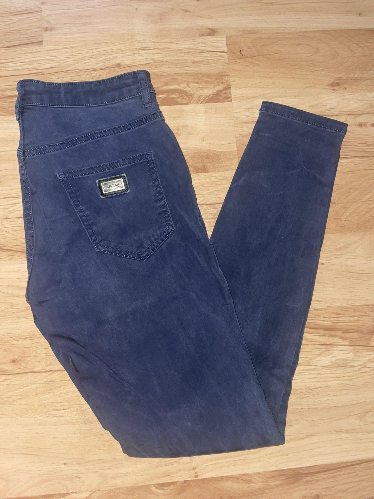 Výborný stav, tenké nohavice /rifle skinny strihu, pružné, modré,lyocelove,stredne vysoký pás, veľkosť 27, pás 35-40 x 2 cm, dĺžka 94 cm, vnútorná dĺžka 74 cm, sedy 23/34 cm