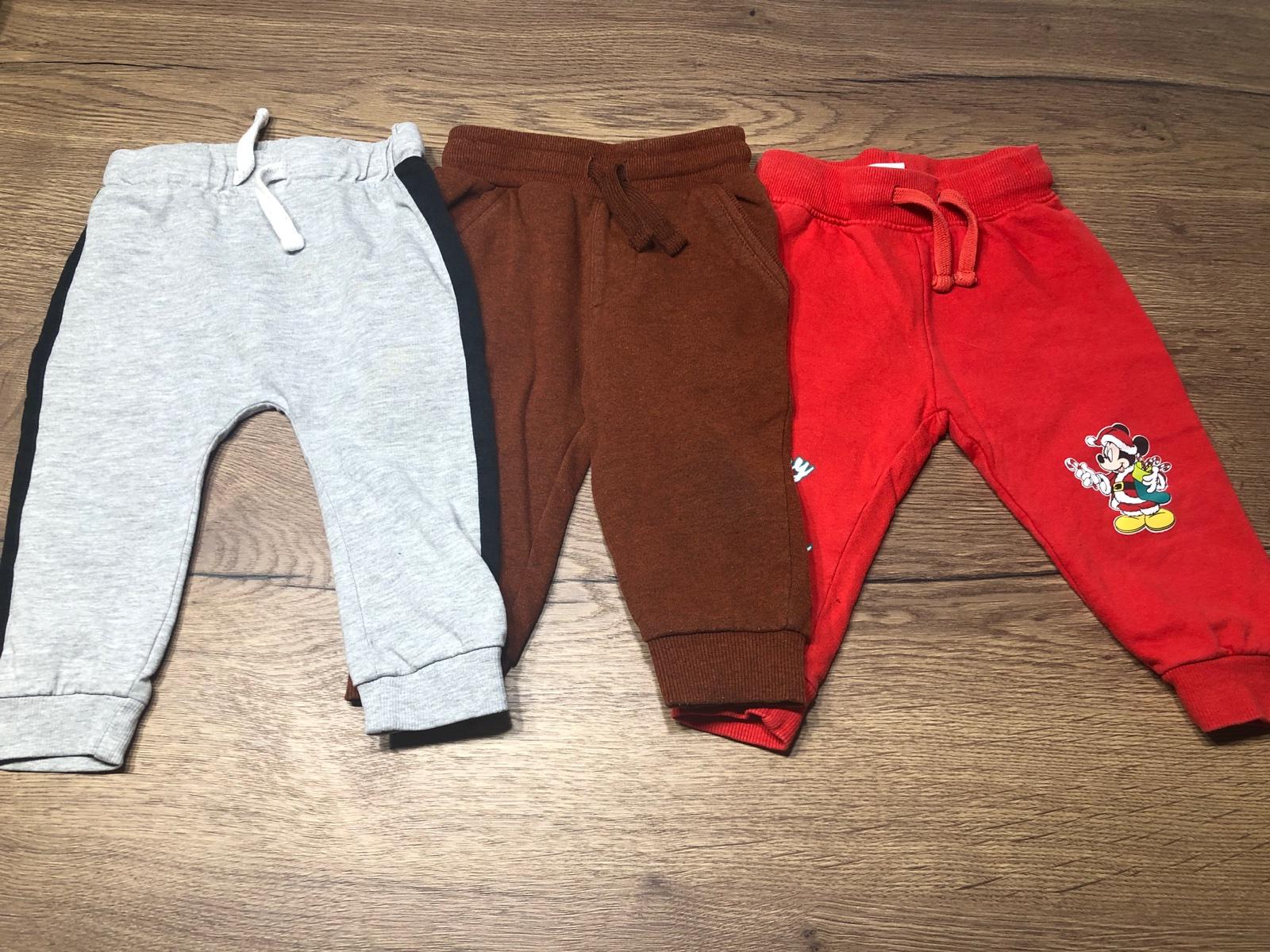 Predám 2x detské tepláky veľkosť 80 - 9-12 mesiacov. K tomu na vyžiadanie darujem 3x tepláky rovnakej veľkosti, na donosenie/ na dvor/ na zničenie - určite sa ešte znosia (na červenýcj e malá dierka, šedé sú od fľakov, tehlové majú vyšúchané kolienka - viď foto). Cena je 3 eurá + poštovné.