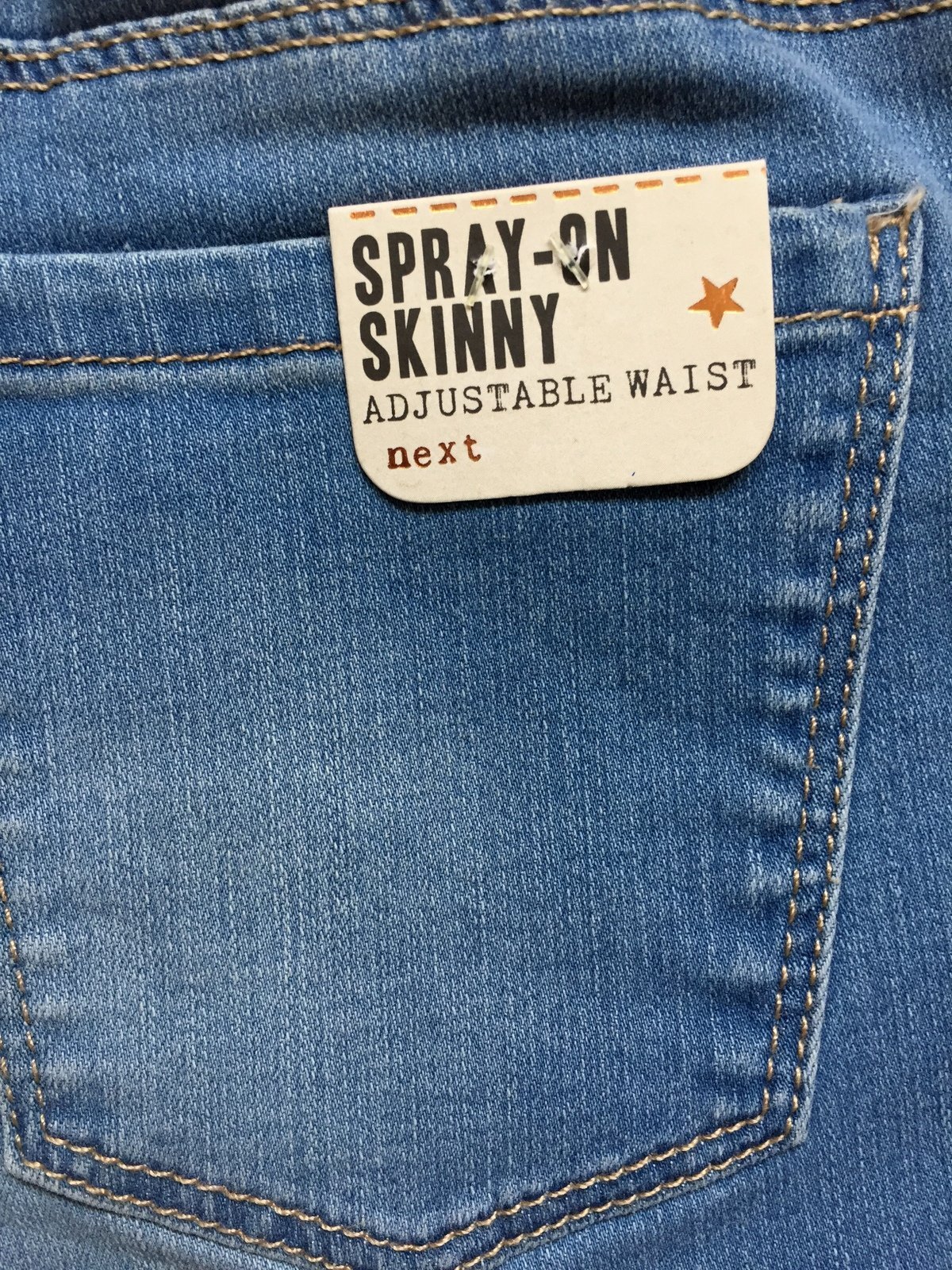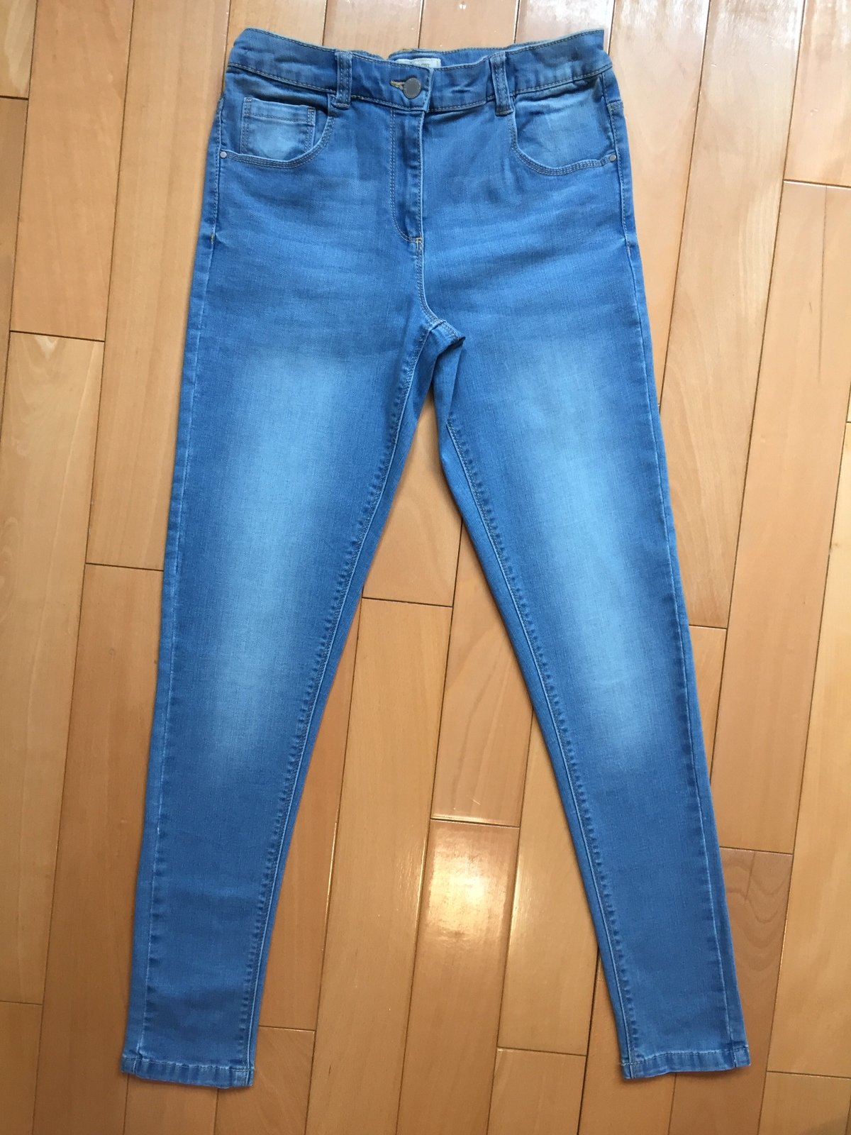 Skinny rifle. Veľkosť uvedená 164, 14 rokov, Sú však menšie, preto dávam ako 152-158. Vhodné tak na 11-12 rôčkov. Dlžka cca 89cm, od pása dole...a pás je regulovateľný na gumičku a gombík.