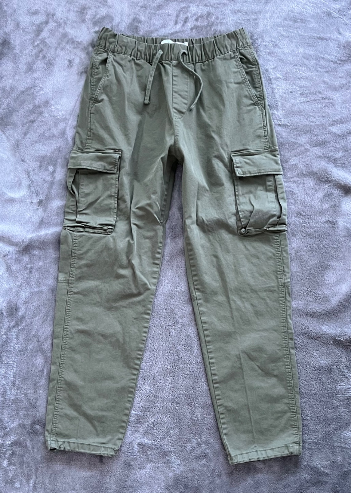 Kapsáčové nohavice voľnejšieho strihu. (Cargo style.) Nastaviteľný spodok. Značka Bershka.V ponuke čierne vo veľkosti M. Pohodlné, ležérne, vhodne na bežne nosenie, bez poškodení. 11 € Vonkajšia d...