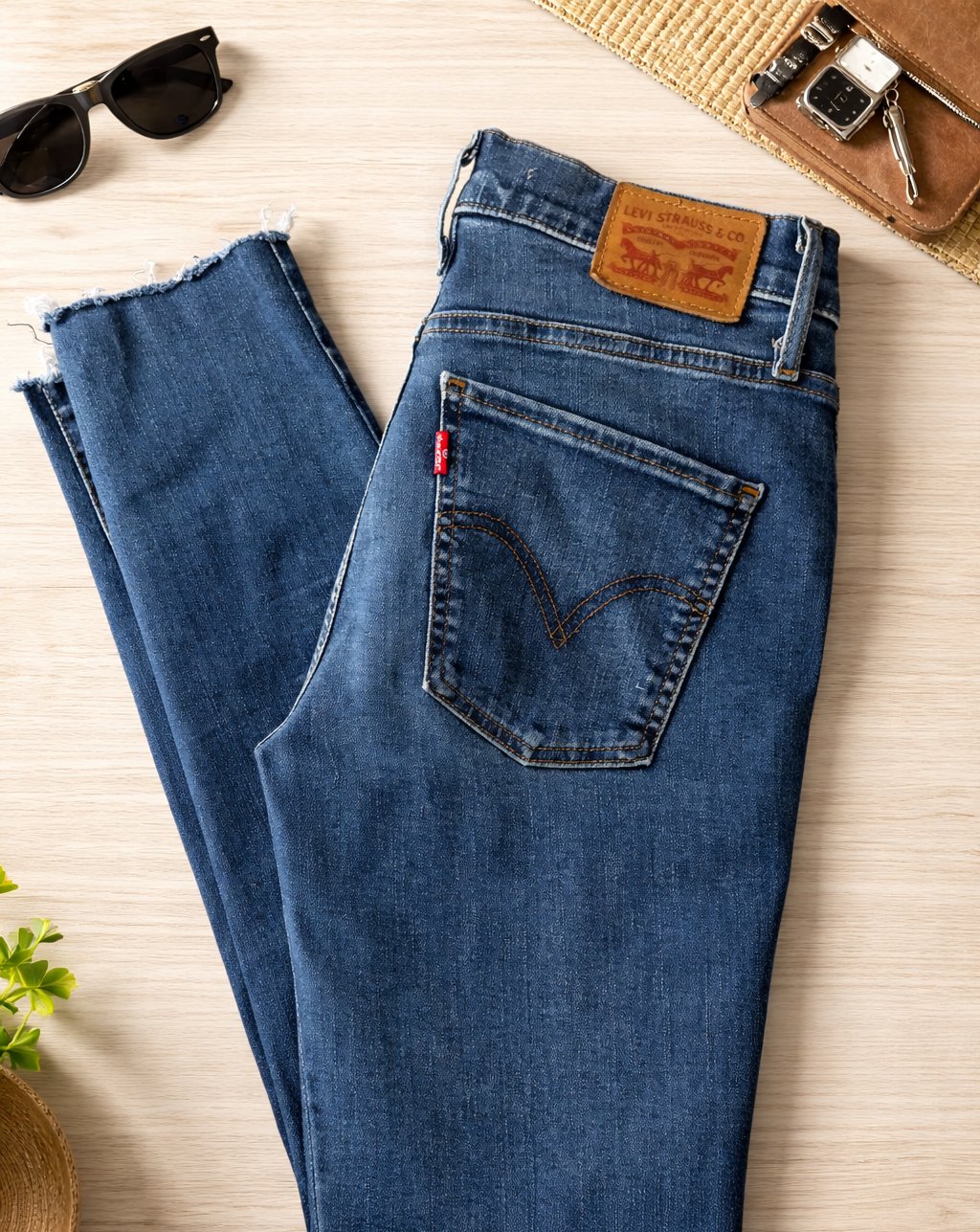 Predám originálne rifle Levi’s v klasickej modrej farbe. Rifle sú vyrobené z kvalitného denimu, príjemné na nosenie a nadčasové. Majú ikonické zadné vrecká s typickým prešívaním, kožený Levi’s štítok a červenú Levi’s visačku.