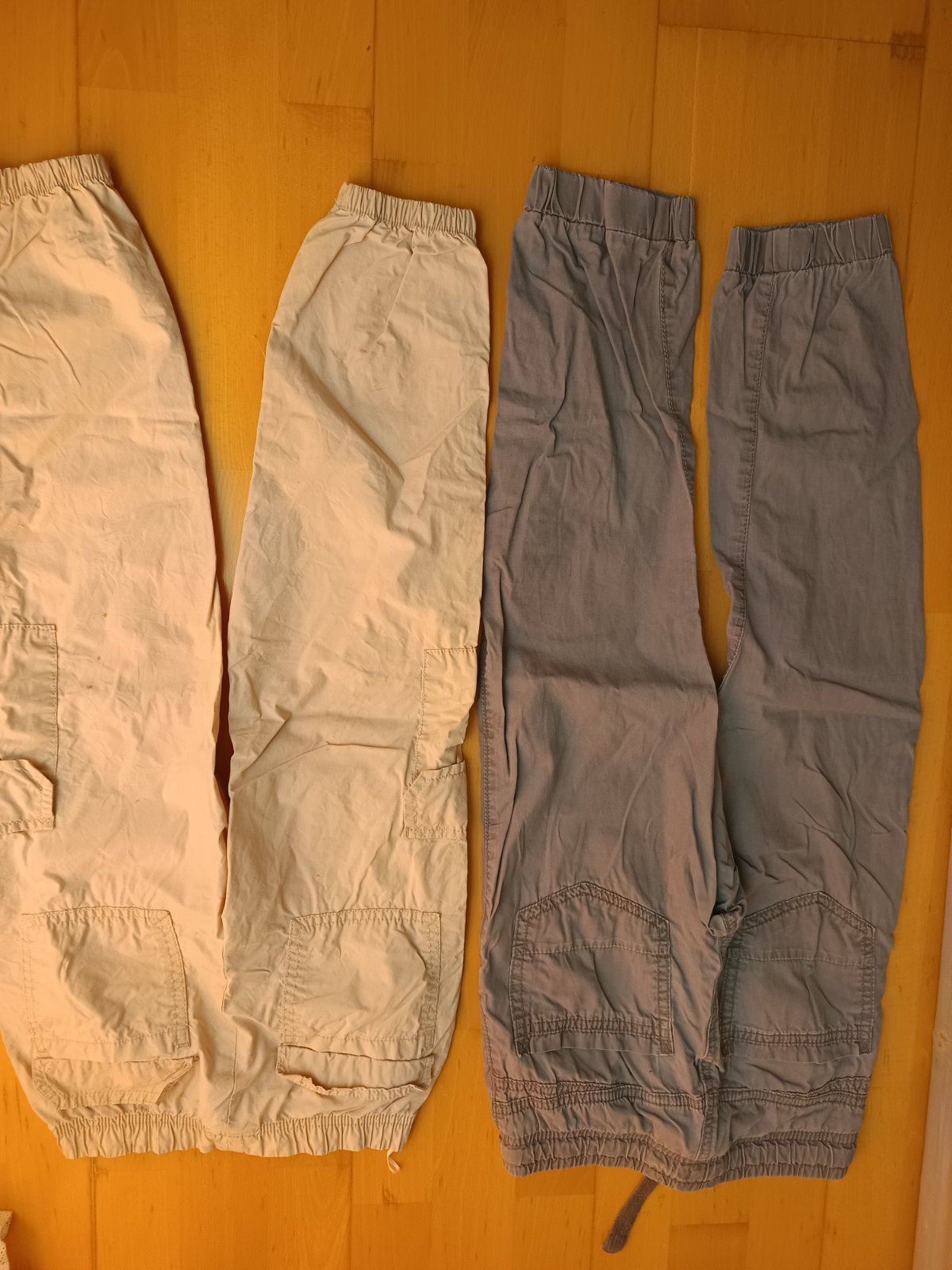 Naše obľúbené, obidvoje majú fliaciky. Viď foto.Jedny sú od farby, druhé asi od púpavy. Veľkosť 6-7 rokov.