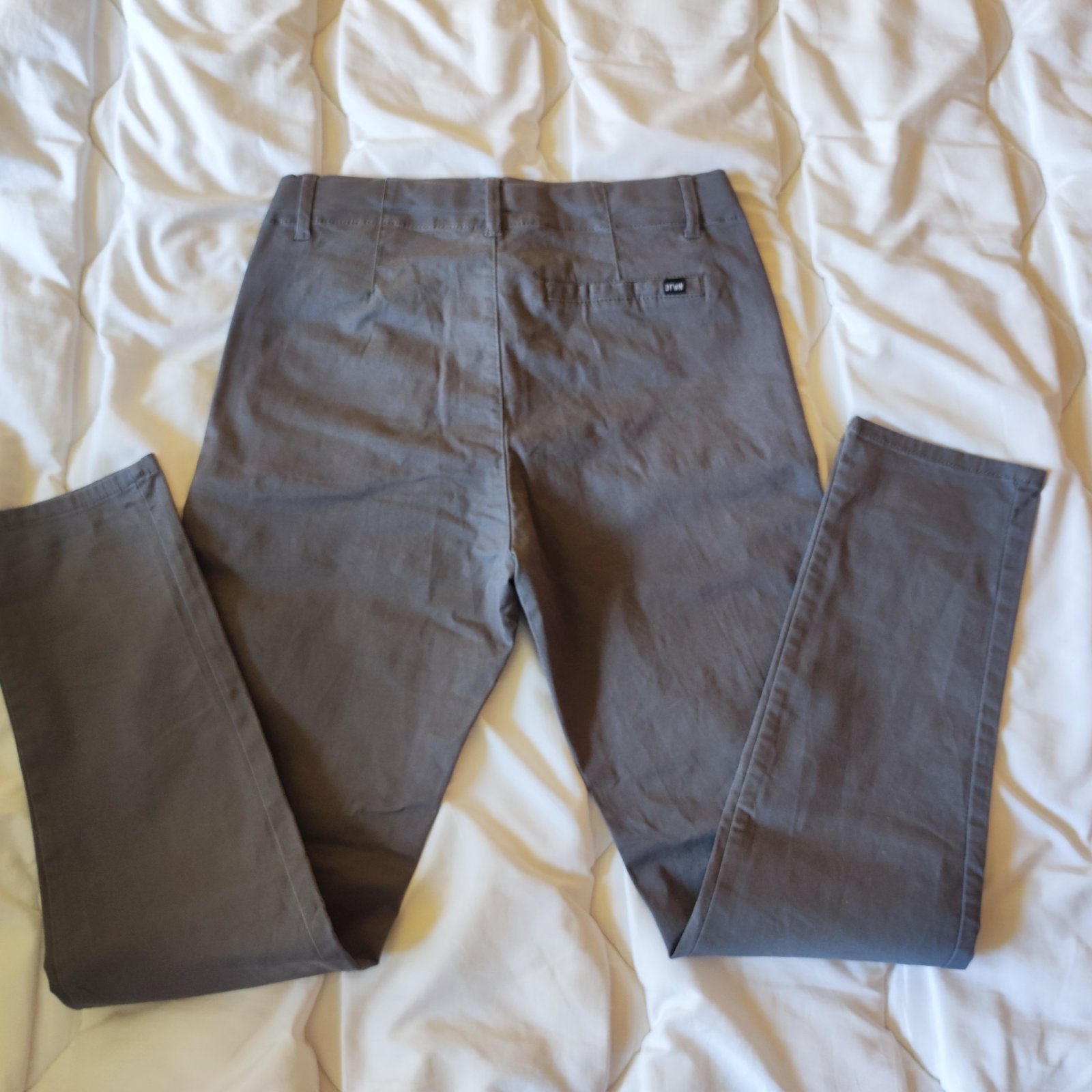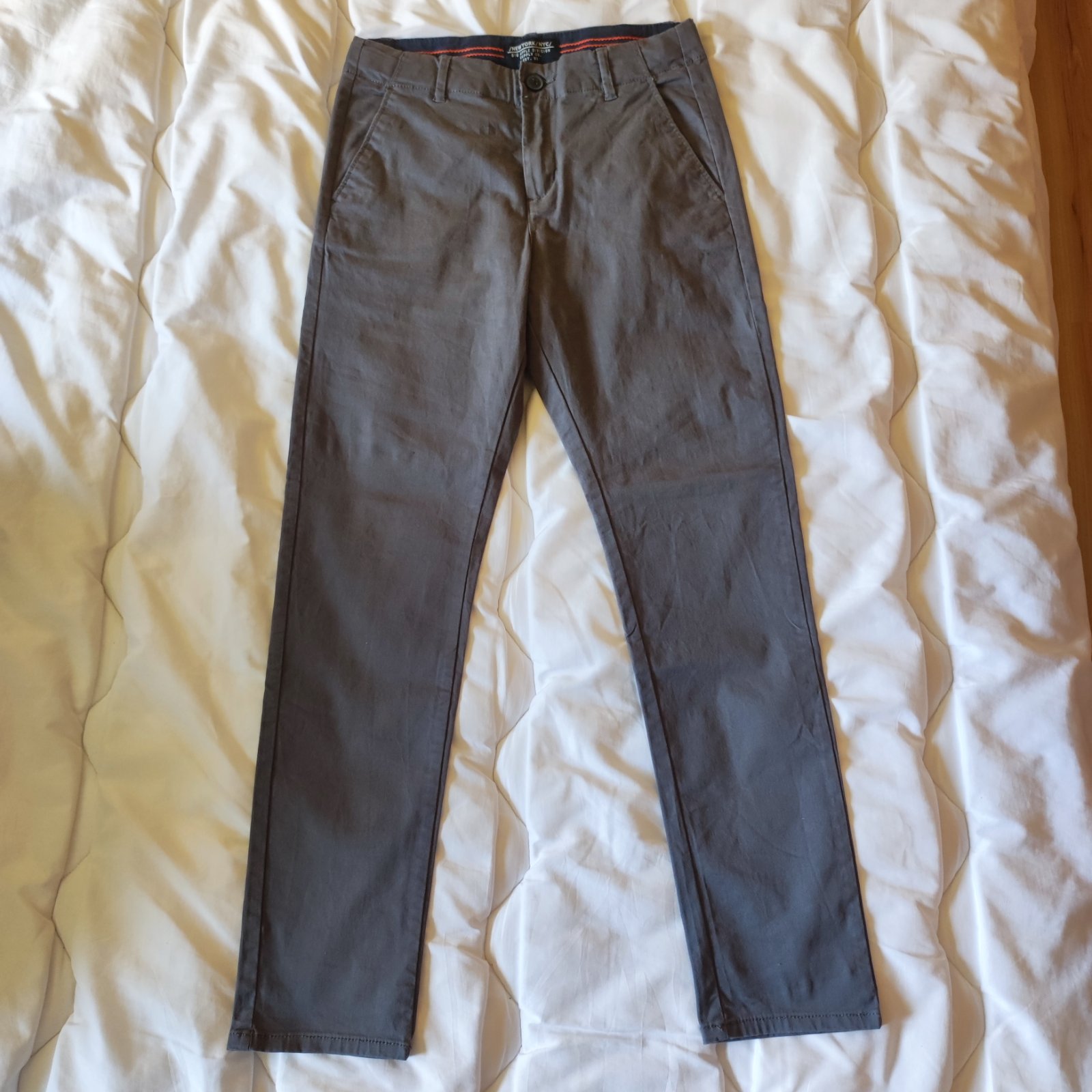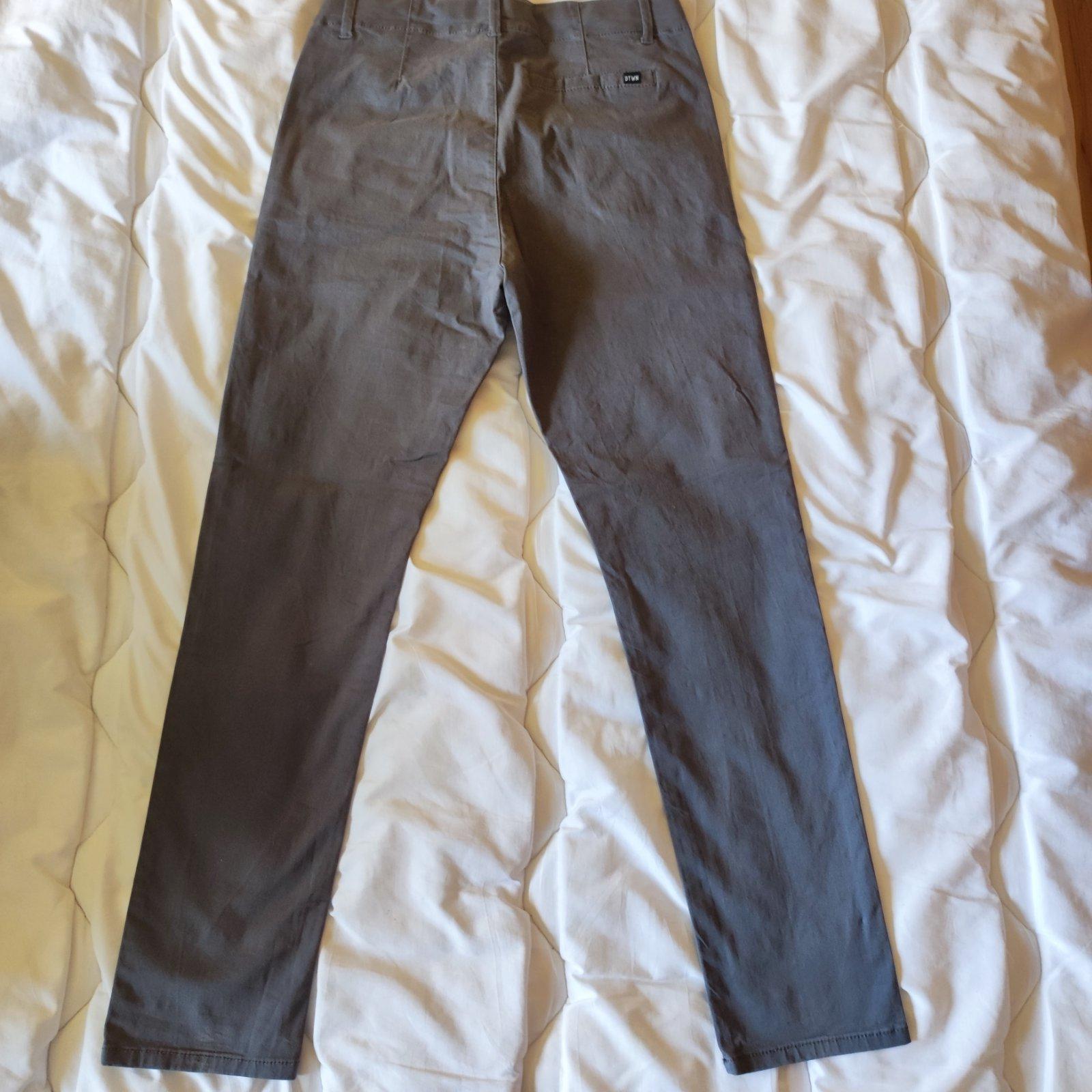 Predám mierne elastické nohavice značky H&M šedej farby vo výbornom stave. Tenšia mäkká elastická látka zaručuje komfort. V páse je regulácia. Dĺžka 92 cm