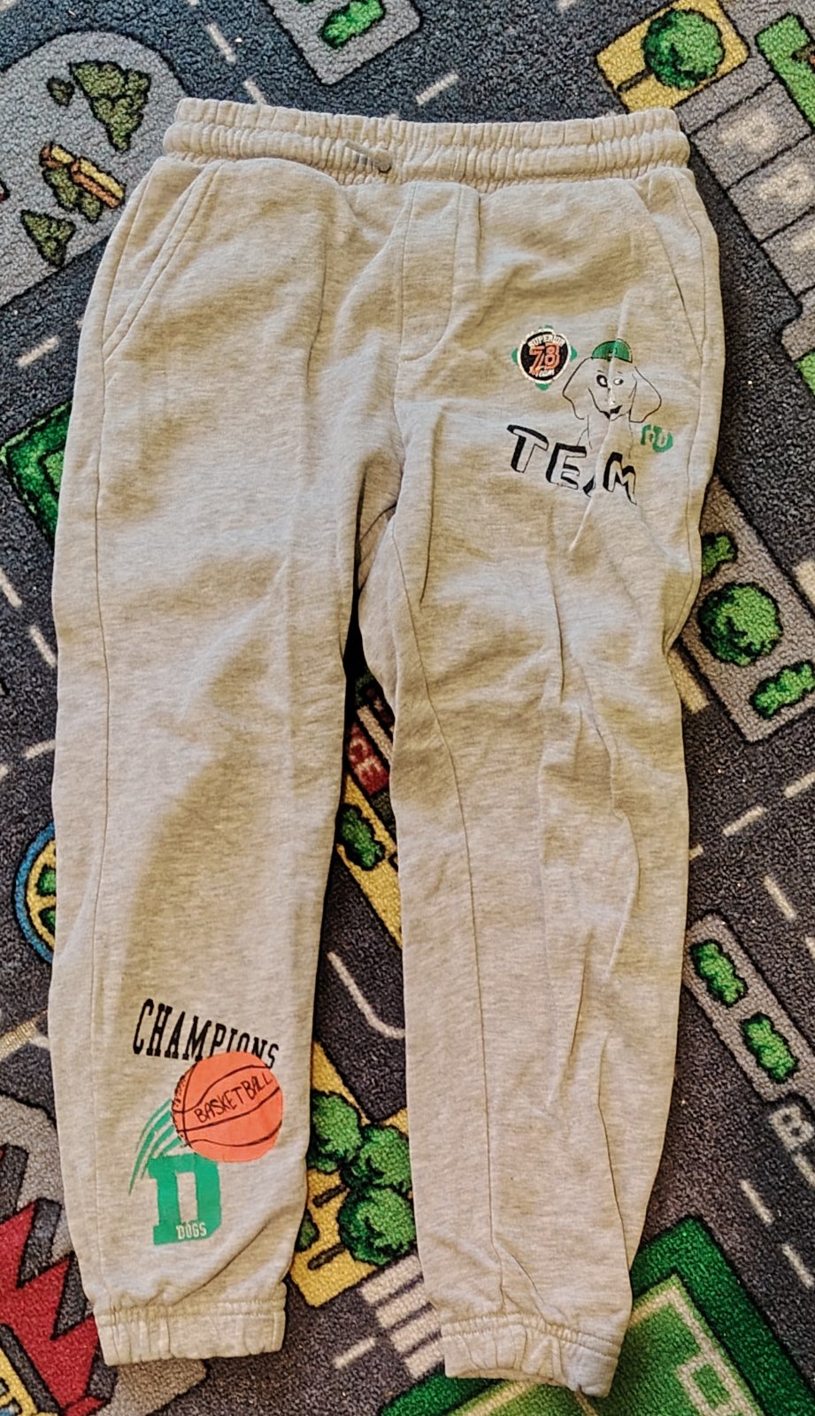 Tepláciky sú stredne hrubé (jeseň, jar), malý ich mal 2x oblečené v škôlke, na žltých je na prednom veľkom vrecku kúsok odpáraný- viď foto, ľahko sa prišije, vhodné do škôlky. Cena a predaj len spolu