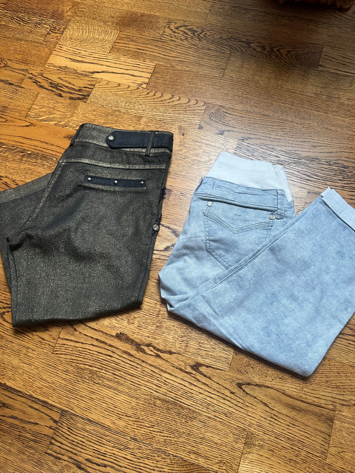 Čierno zlate a modré. Oboje obsahujú aj elastan . Cena spolu