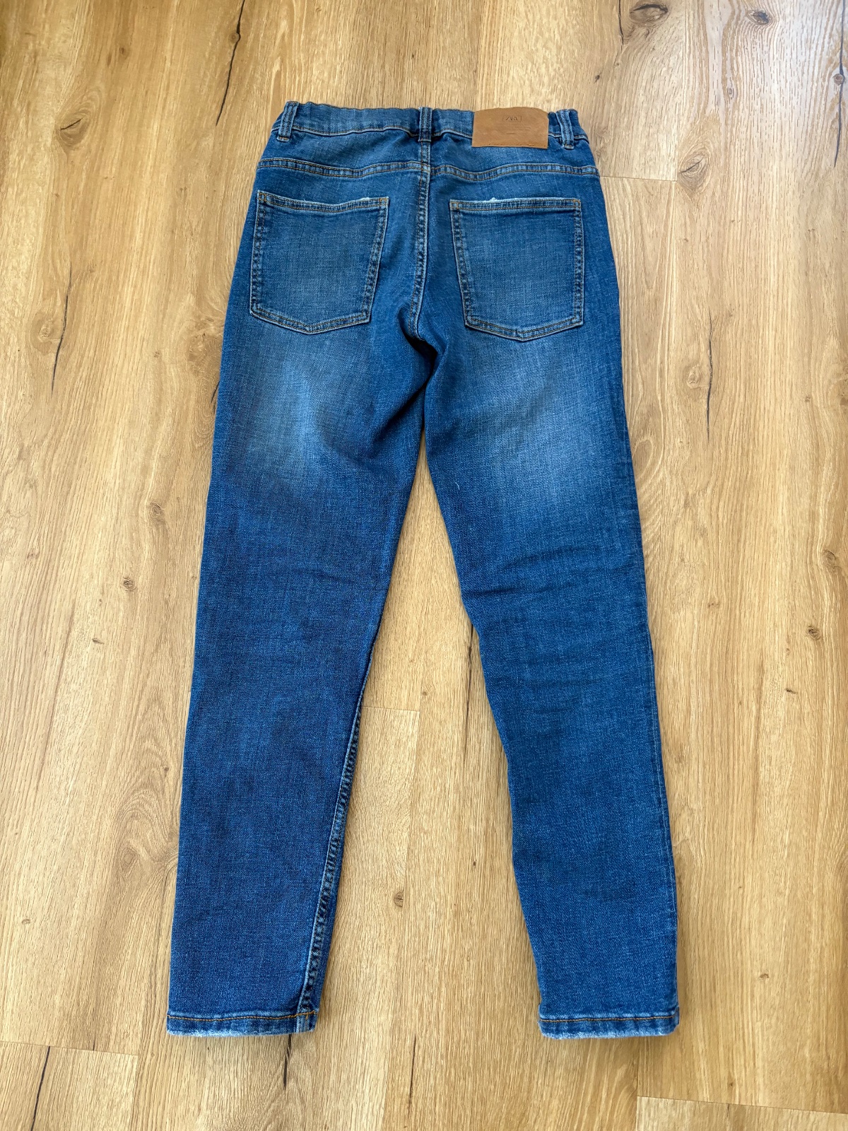 Krásne rifle chlapčenské, pár krát oblečené, úplne top stav. Majú regulovateľný pás, predné aj zadné vrecká. Rozmery:dl.95 cm, pás 2x34 cm, boky 2x43cm.