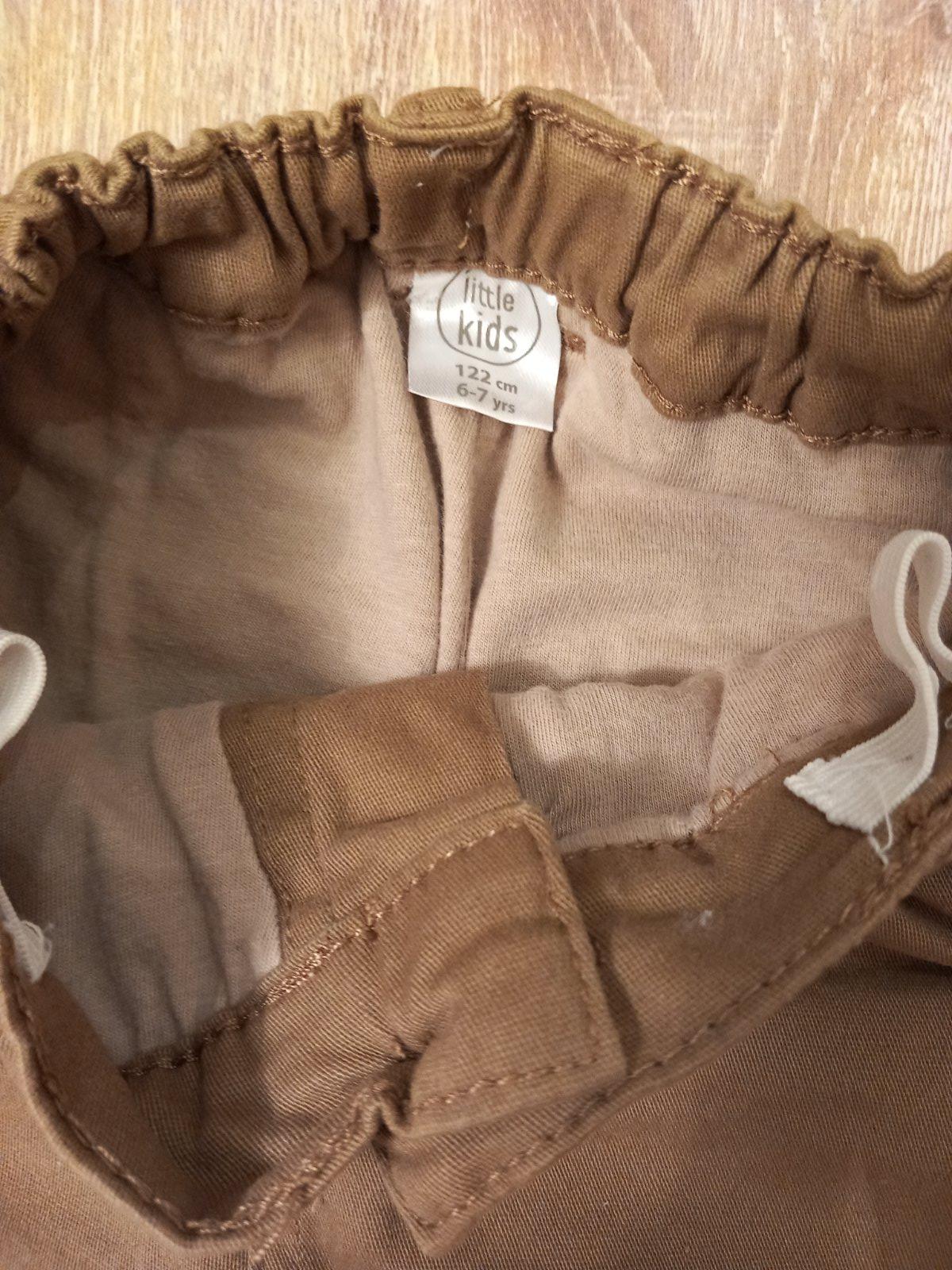 Hnedé džinsové nohavice, s vreckami, v dobrom stave, veľ. 122