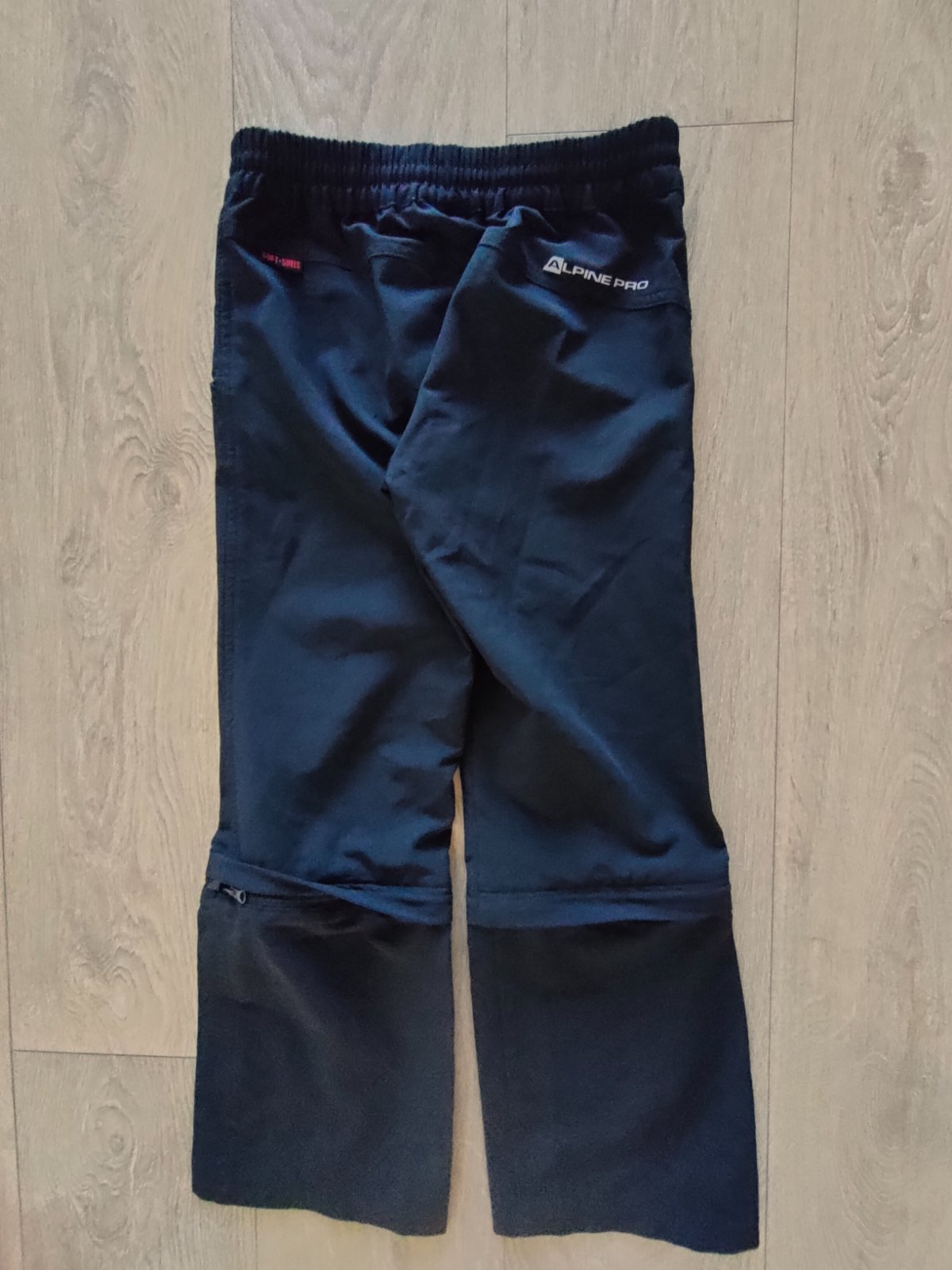 Kvalitné ľahké detské softshellové nohavice zn Alpine Pro, veľ. 128-134. Odnímateľné (na zips) - možné z nich v prípade potreby urobiť trištvrťové nohavice.