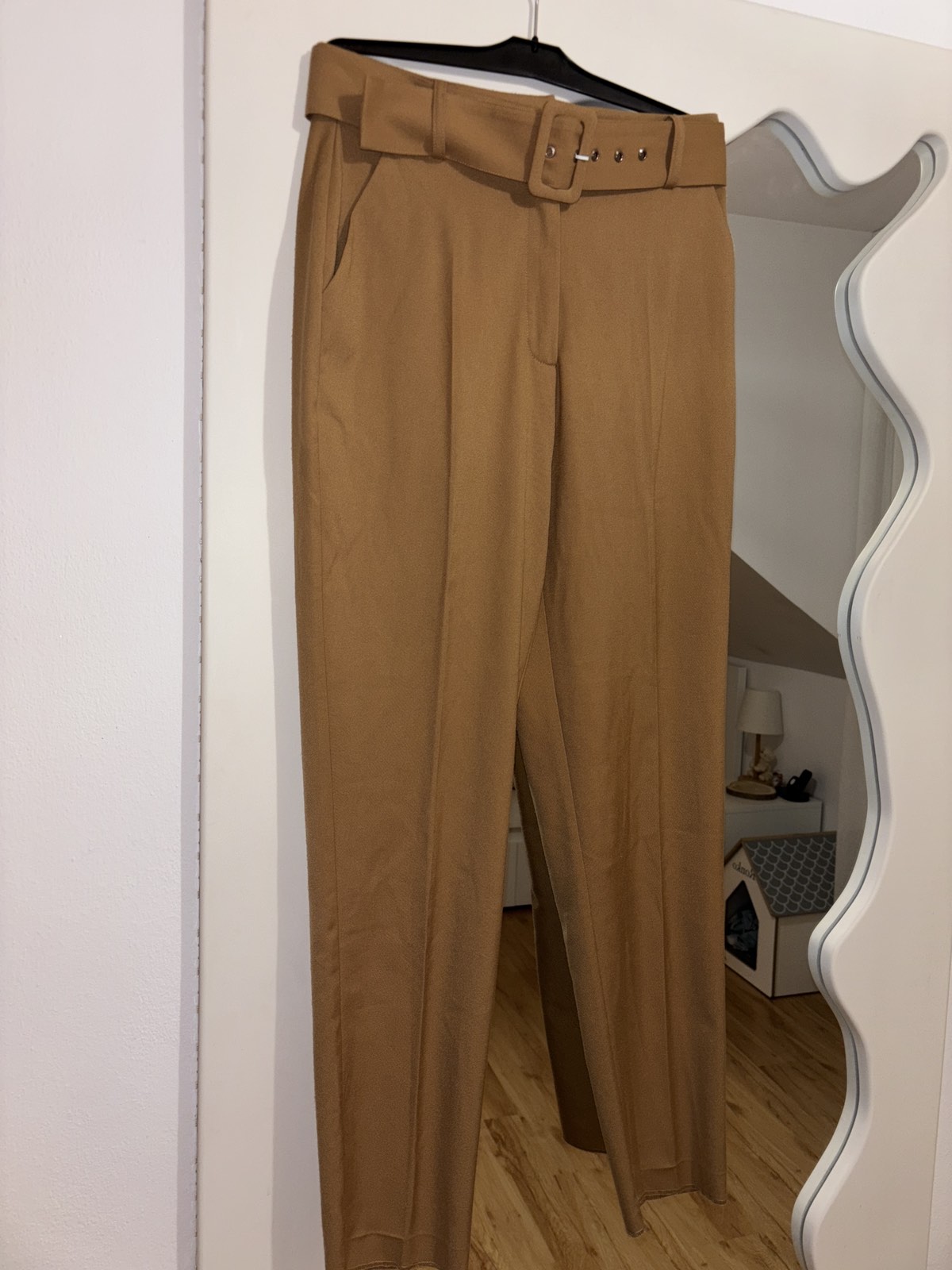 Výborný stav, pieskovo hnedé, vysoký pás, veľkosť 36, pás 36 cm, dĺžka 100 cm, vnútorná dĺžka 68 cm, sedy 29/46 cm