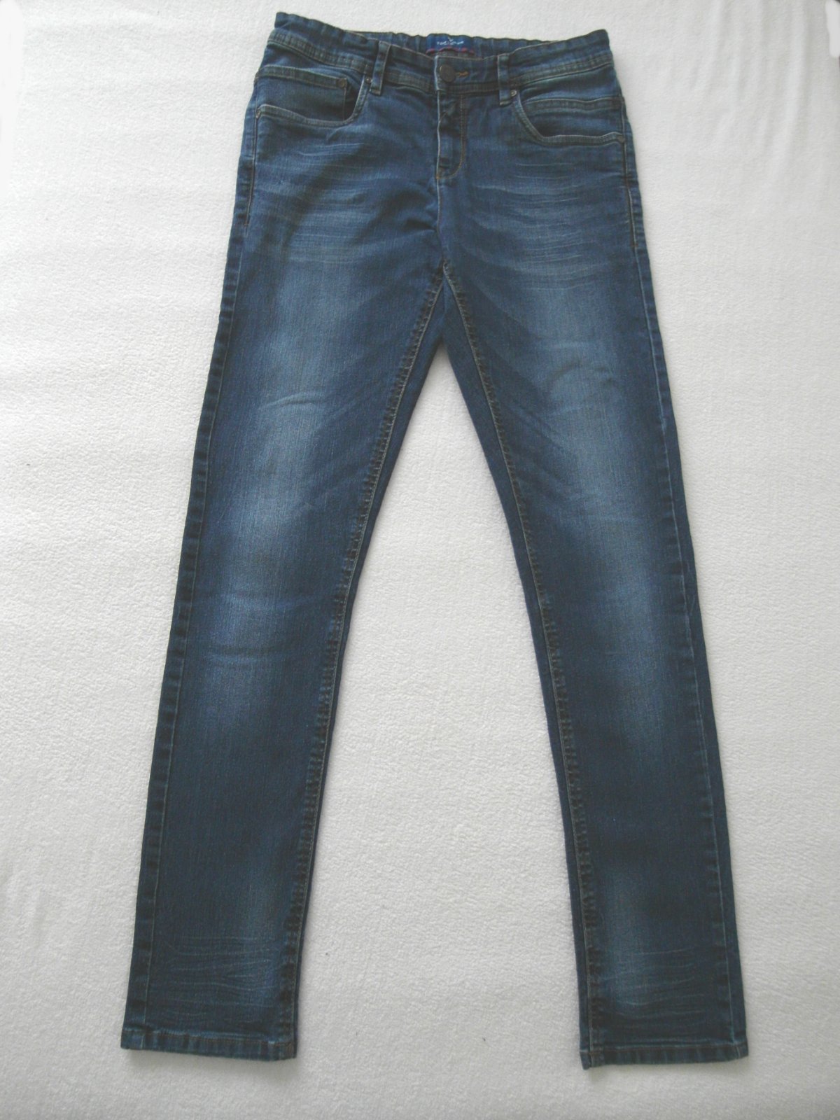 slim rifle v pase regulácia gumičkou, nosene, super stav, mäkka elastická rifľovina, dl 100cm, pas 2x36cm, vnut.dl 76cm
