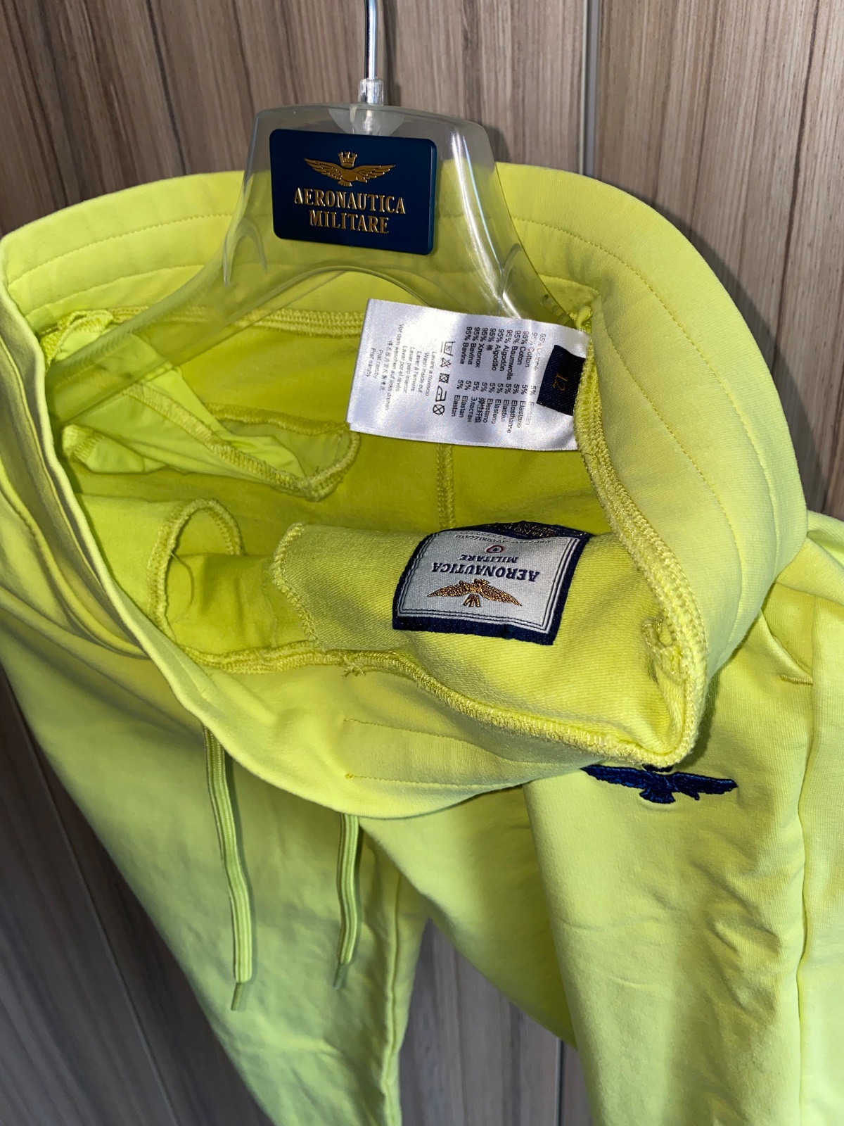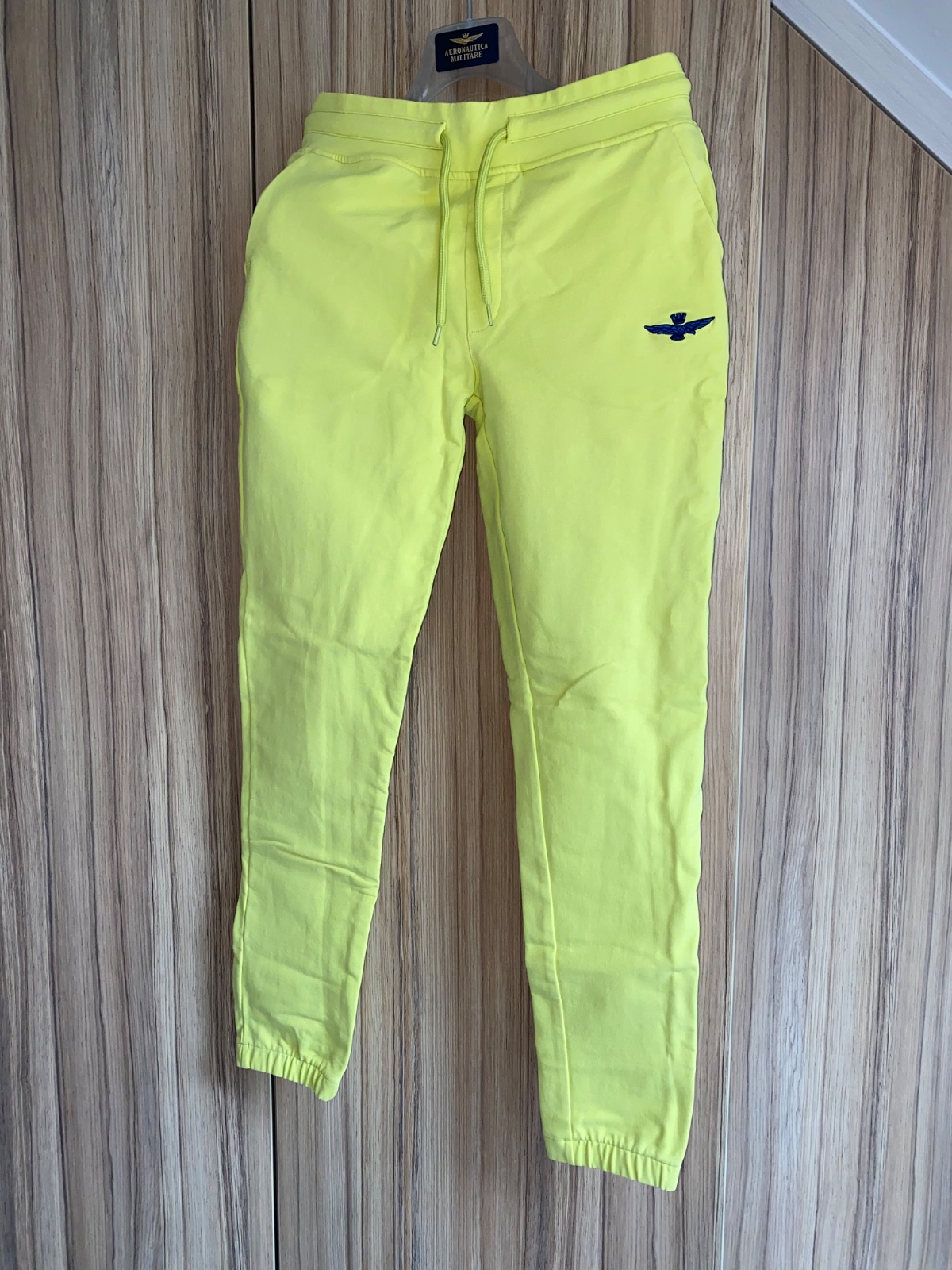 Predám málo nosené tepláky zn. Aeronautica Militare (originál). Veľkosť uvedená 12 rokov. Farba krikľavá. Vzadu a na spodnej časti jemné fľaky (viď foto). PC 69€.