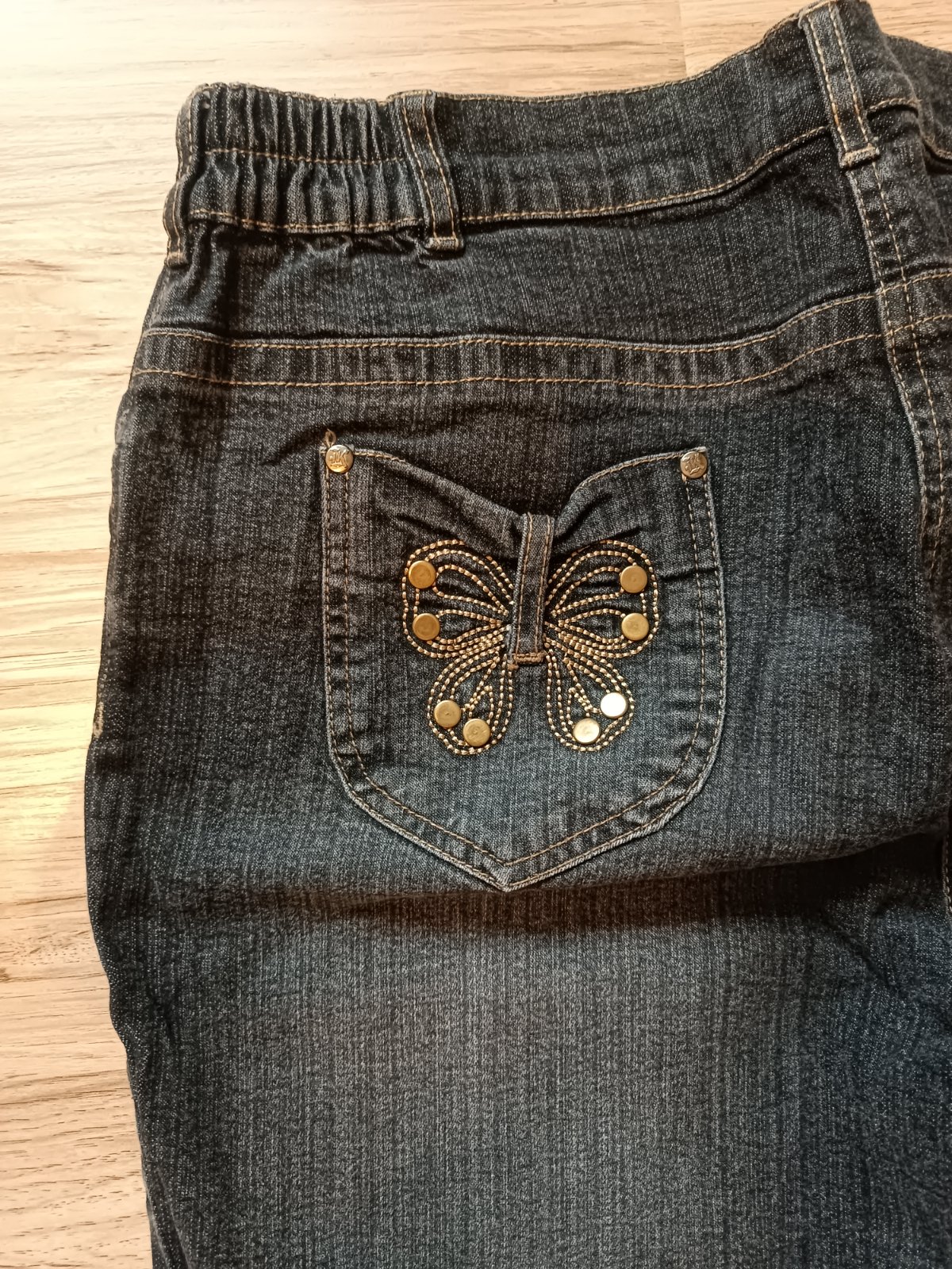 Dámske rifle, veľkosť 44/46 - odfotený štítok, cena 6 €.