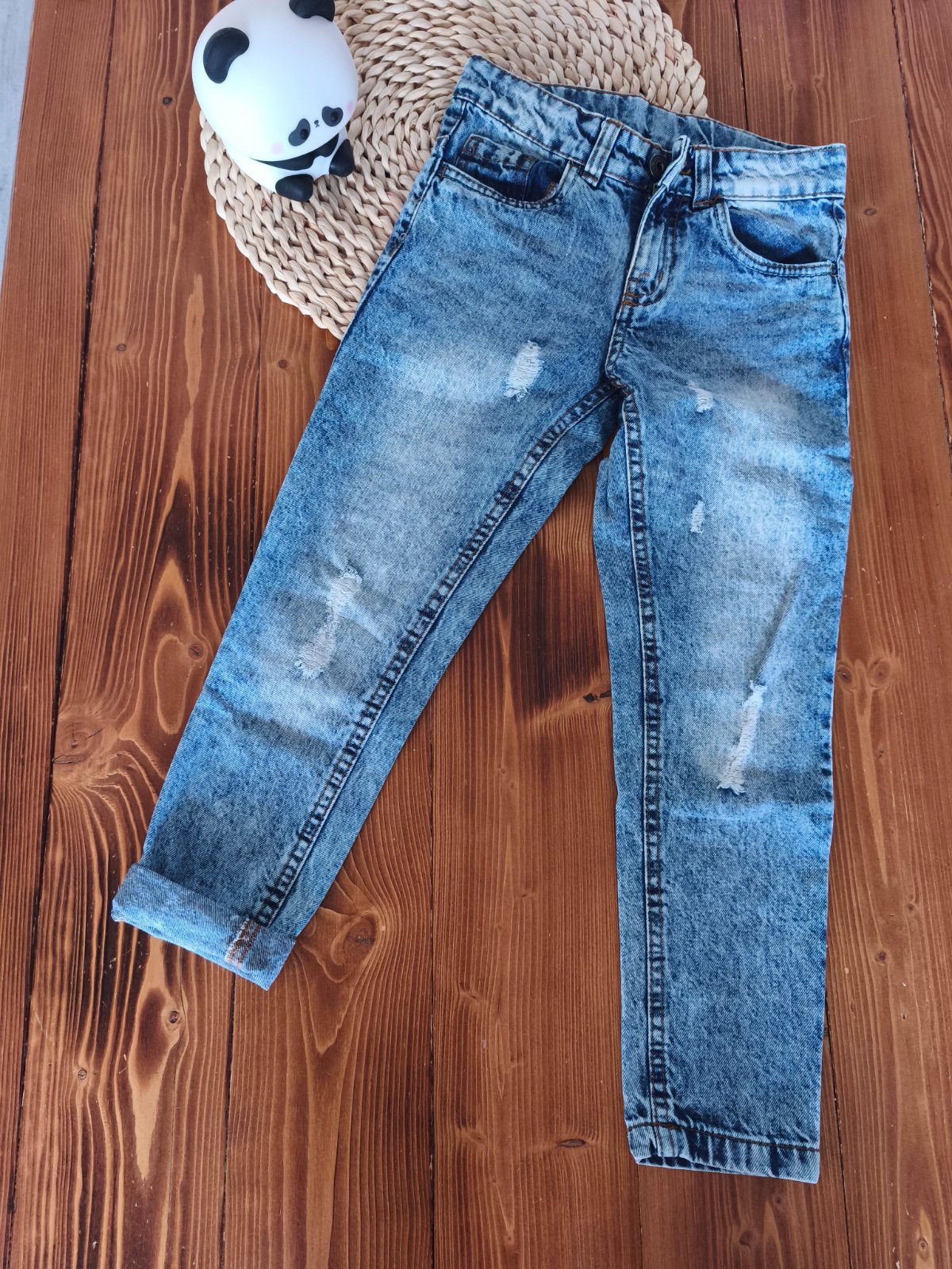 Moderné dievčenské skinny rifle vo vyšúchanom vzhľade bledomodrej farby značky Zara vo veľkosti 122. Po bokoch z vonkajšej strany majú našitú tmavomodrú zamatovú stuhu. Zapínajú sa na zips a gombík...