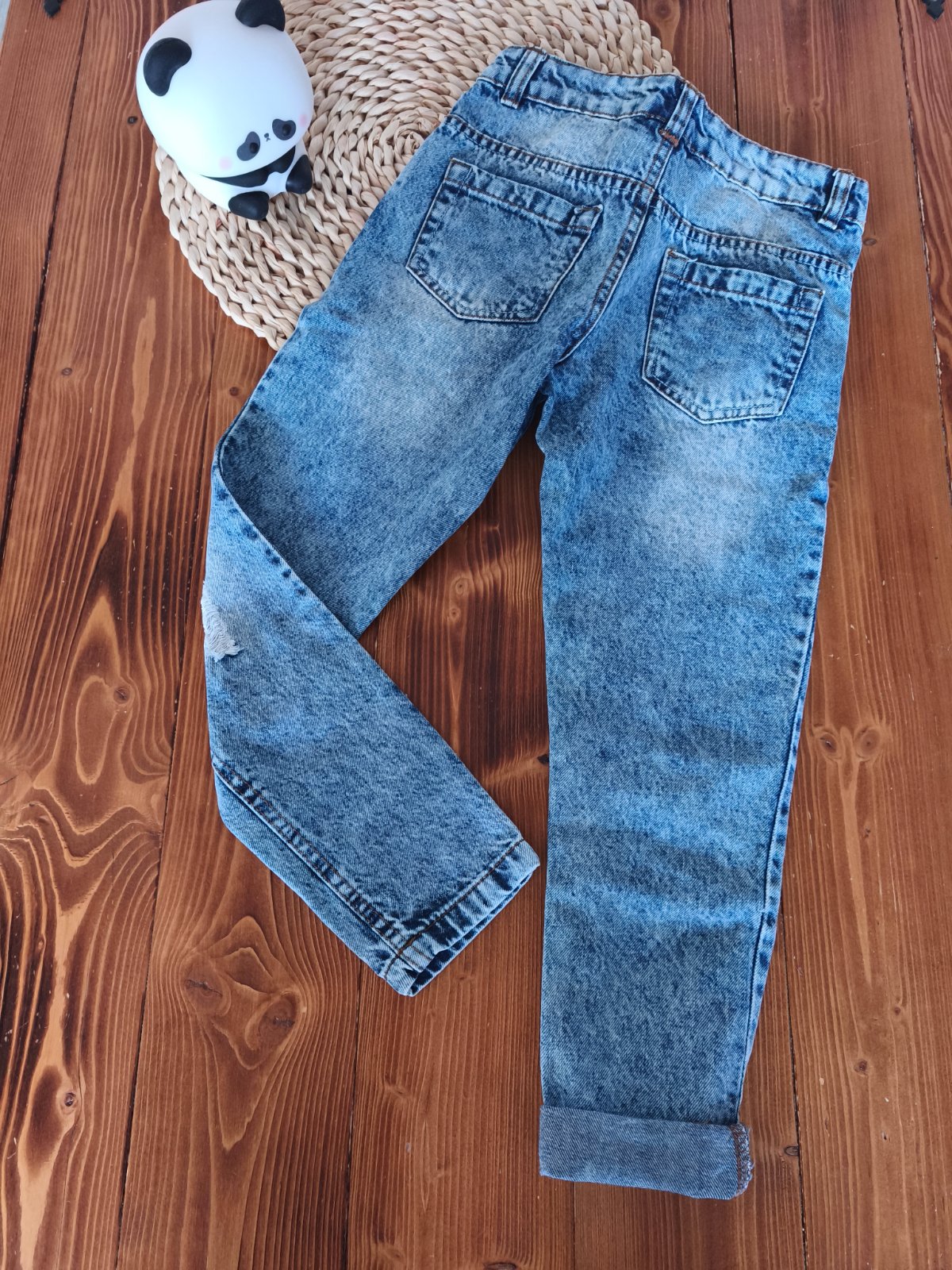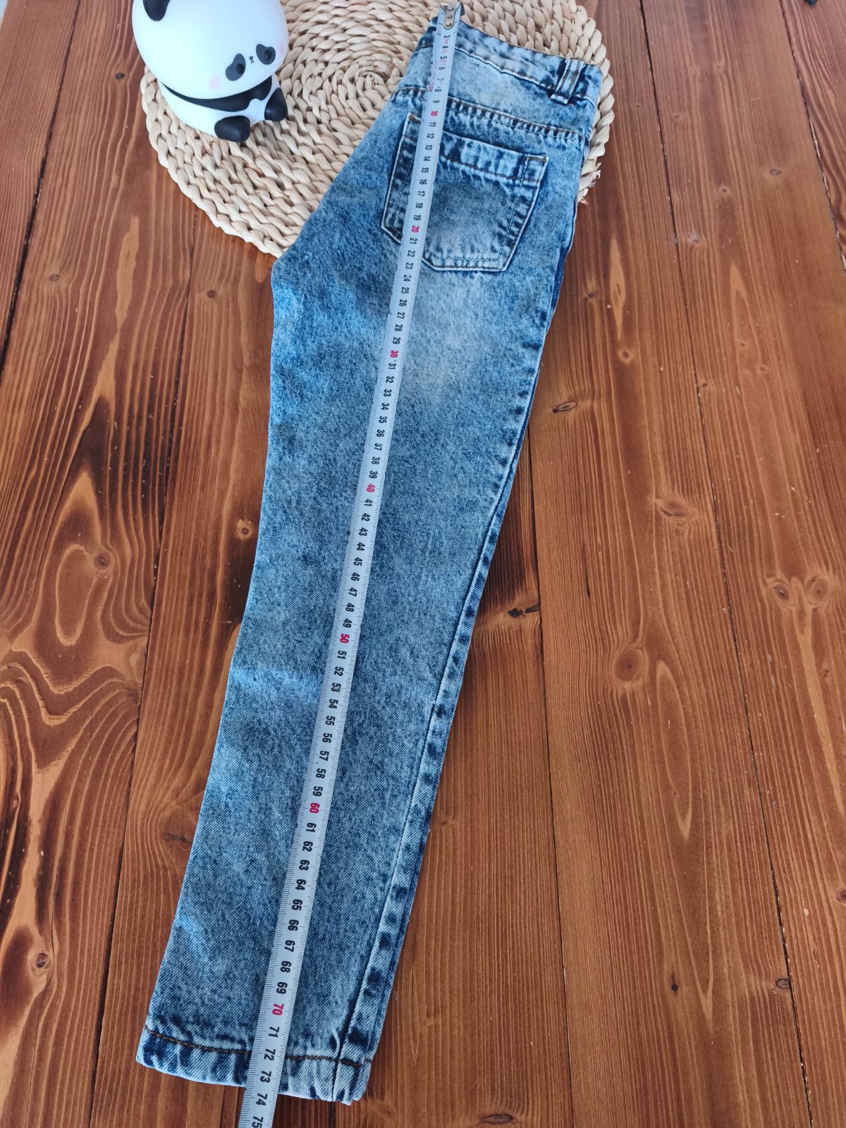 Mierne zvonove dzinsy Zara s nastavitelnym pasom, sedia na 116-122, rozmery na foto