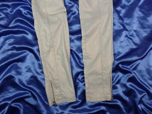 Luxusné maslové rifle popretkávané so zlatou niťou, zapínanie na zips a gombík, materiál 76% bavlna, 22% polyester, 2% elastan, super stav, ako nové.