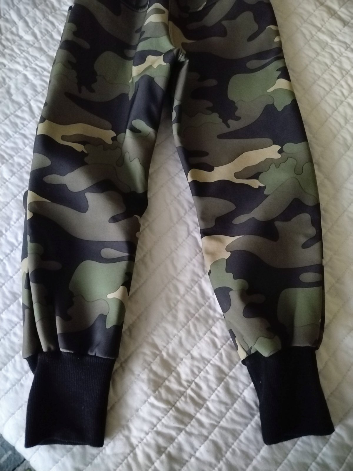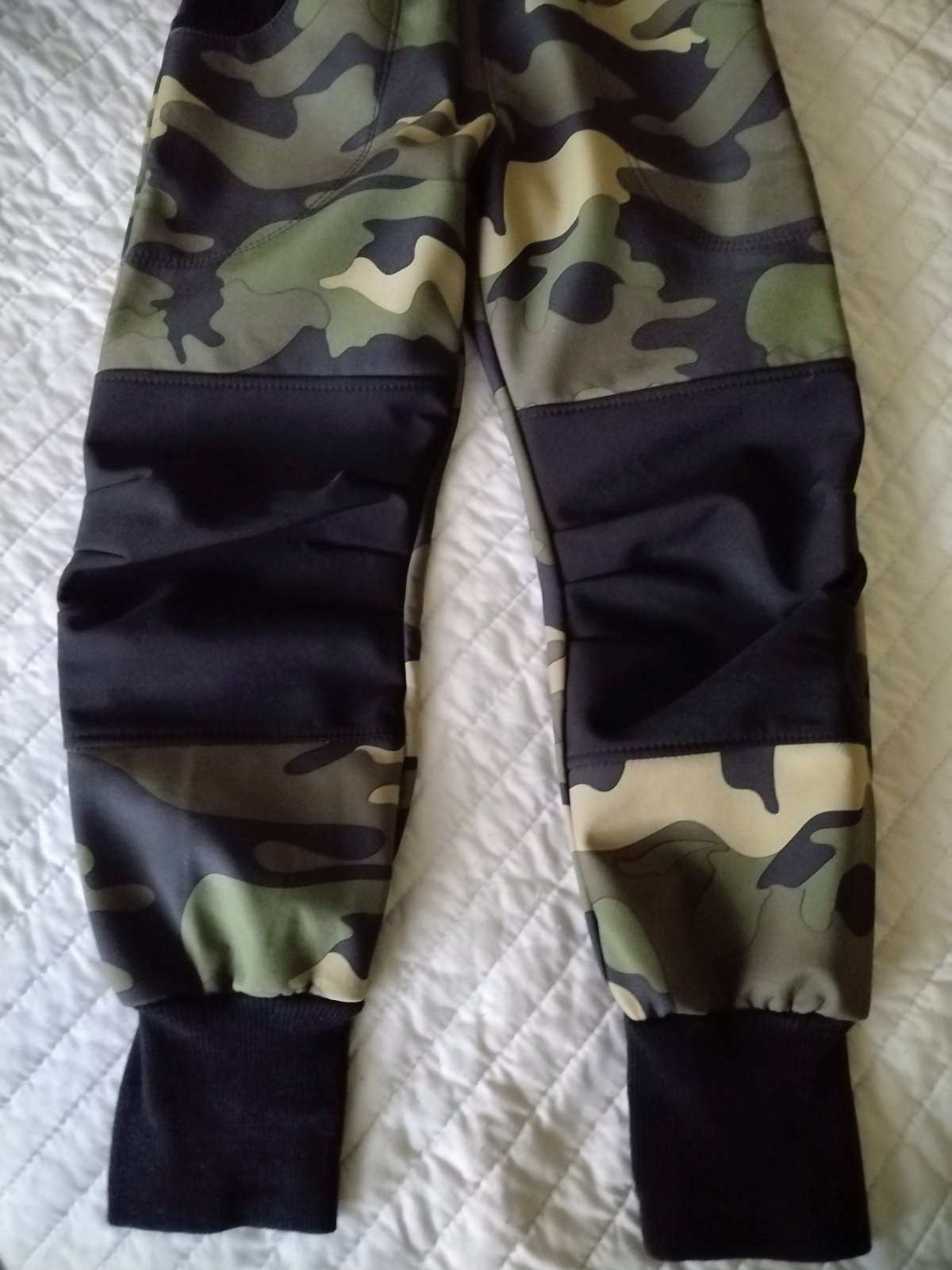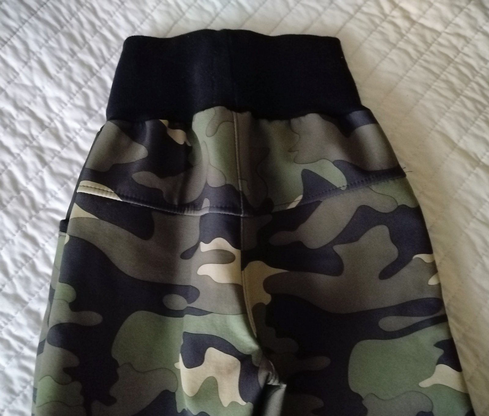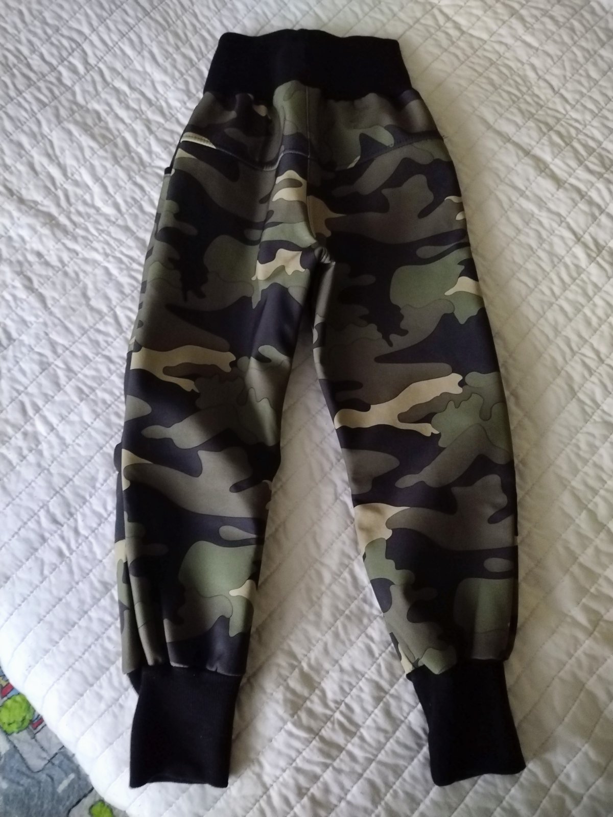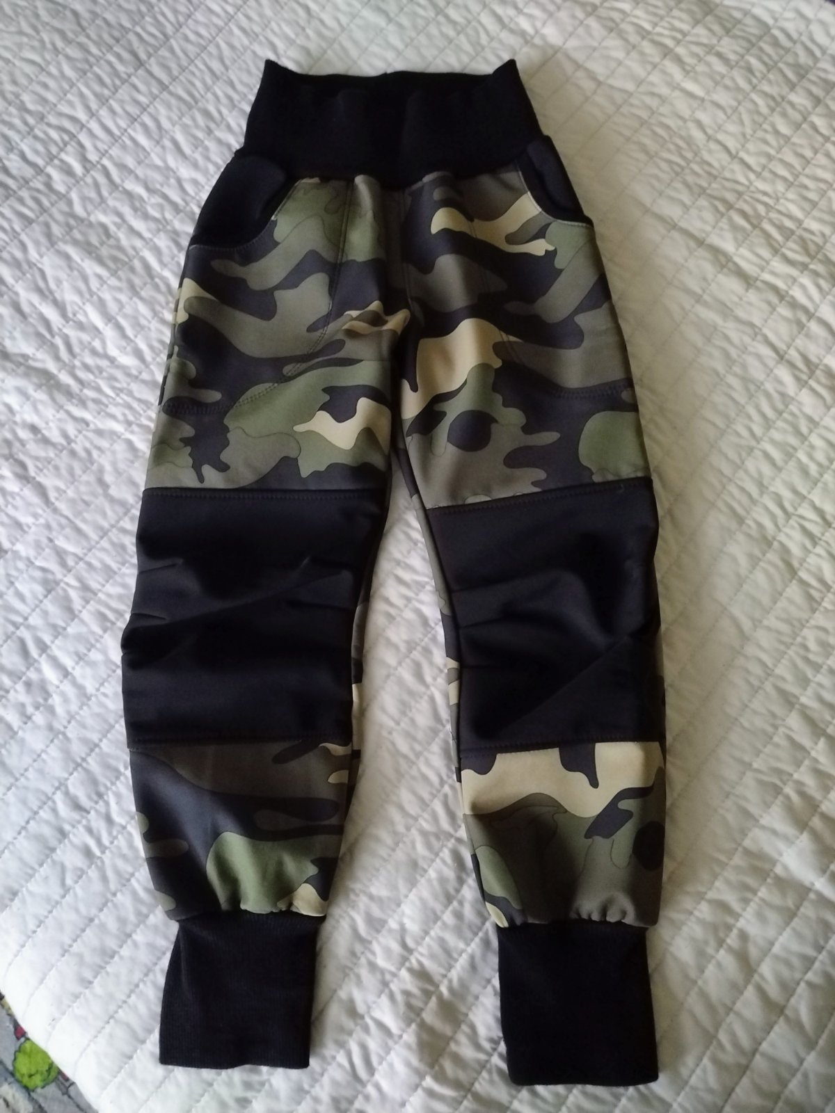 Maskáčové softshelové nohavice, veľkosť 122, v páse na gumičku, na spodku gumička, kvalitný hrubý softshel, handmade výrobok vyrobený na objednávku, nové, nenosené.