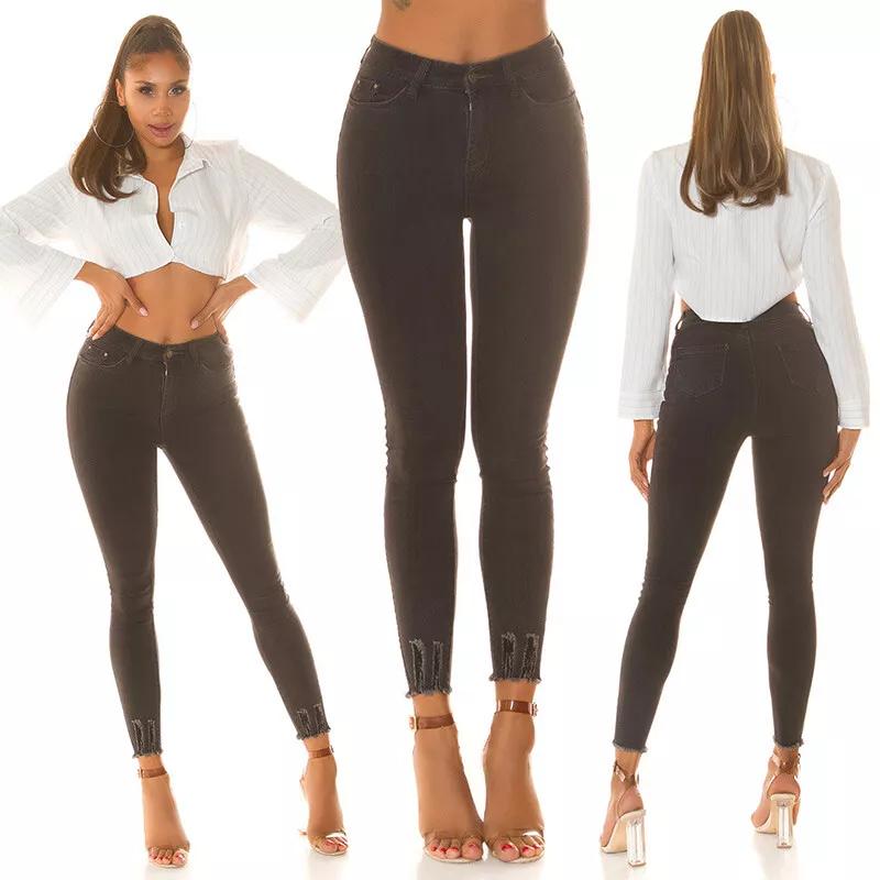Super čierne dámske rifle, hrubšia riflovina, mäkký materiál, slim strih.