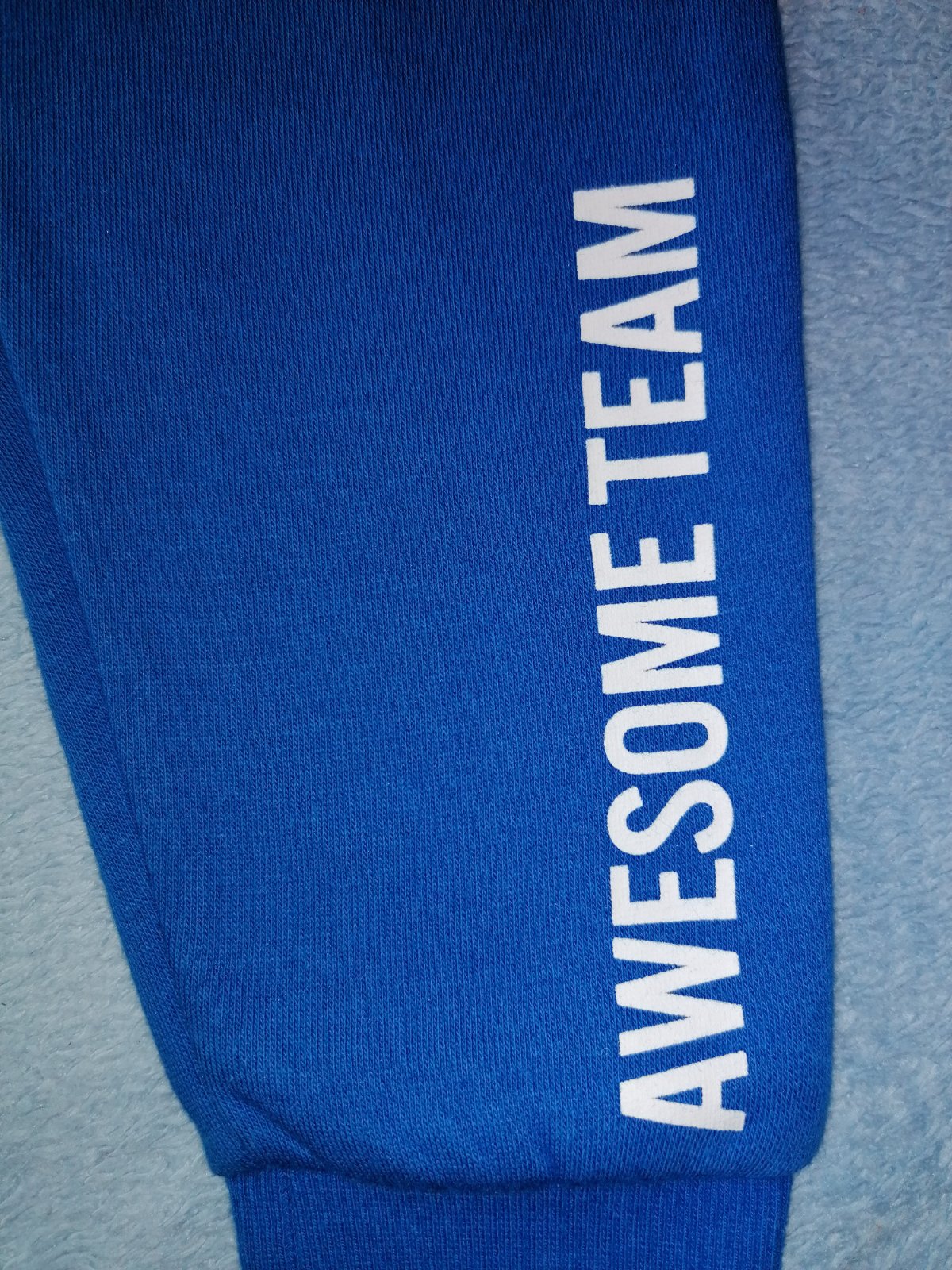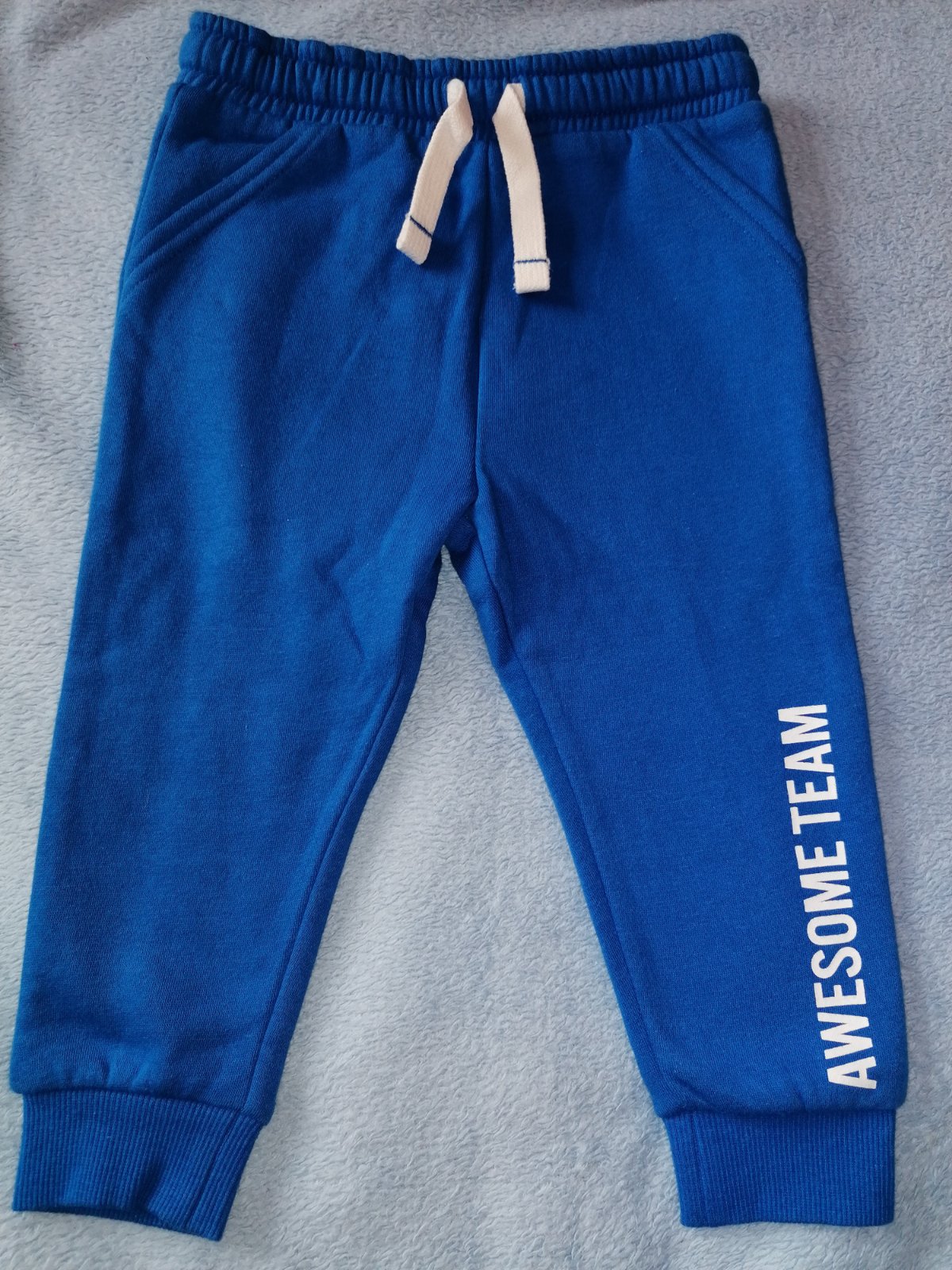 Super stav, pekna tmavomodra farba. Jemny minizmolcek na dolnom patente, nosne minimalne, mali sme vela teplakov. Pekne ukazu s mikinkou z rovnakej kolekcie, cena spolu s mikinkou 5eur.