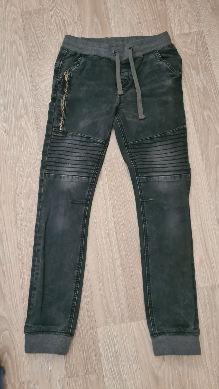 nové, nenosené rifle..vysačky sme odstrihli a syn ked vyskúšal tak mu boli krátke.. veľkosť je 164, dlžka je 94cm v páse sú na regulovatelnú gumu maju 38cm x 2cm