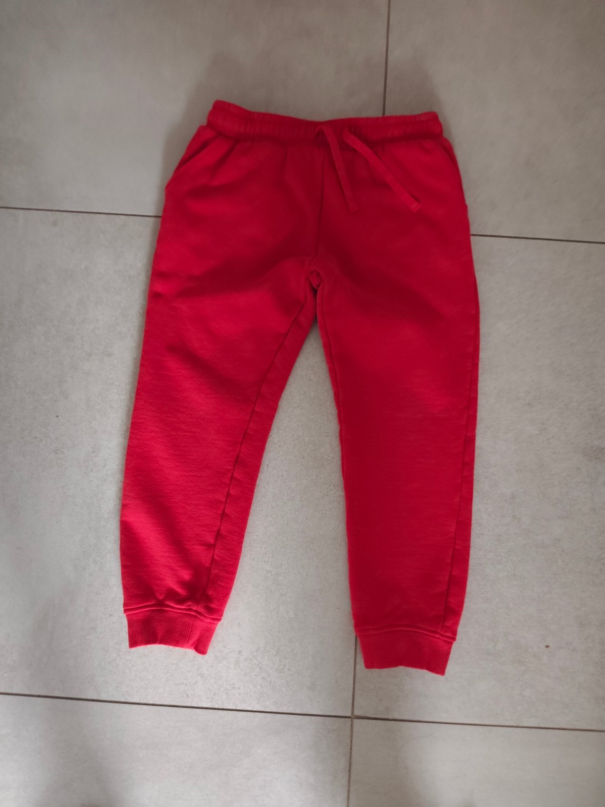 Detské hrubšie tepláky, uvedená veľkosť 134, ale sú menšie, hneď nám boli malé, 1x prané a možno maxim. 2x oblečené, čiže v top stave.