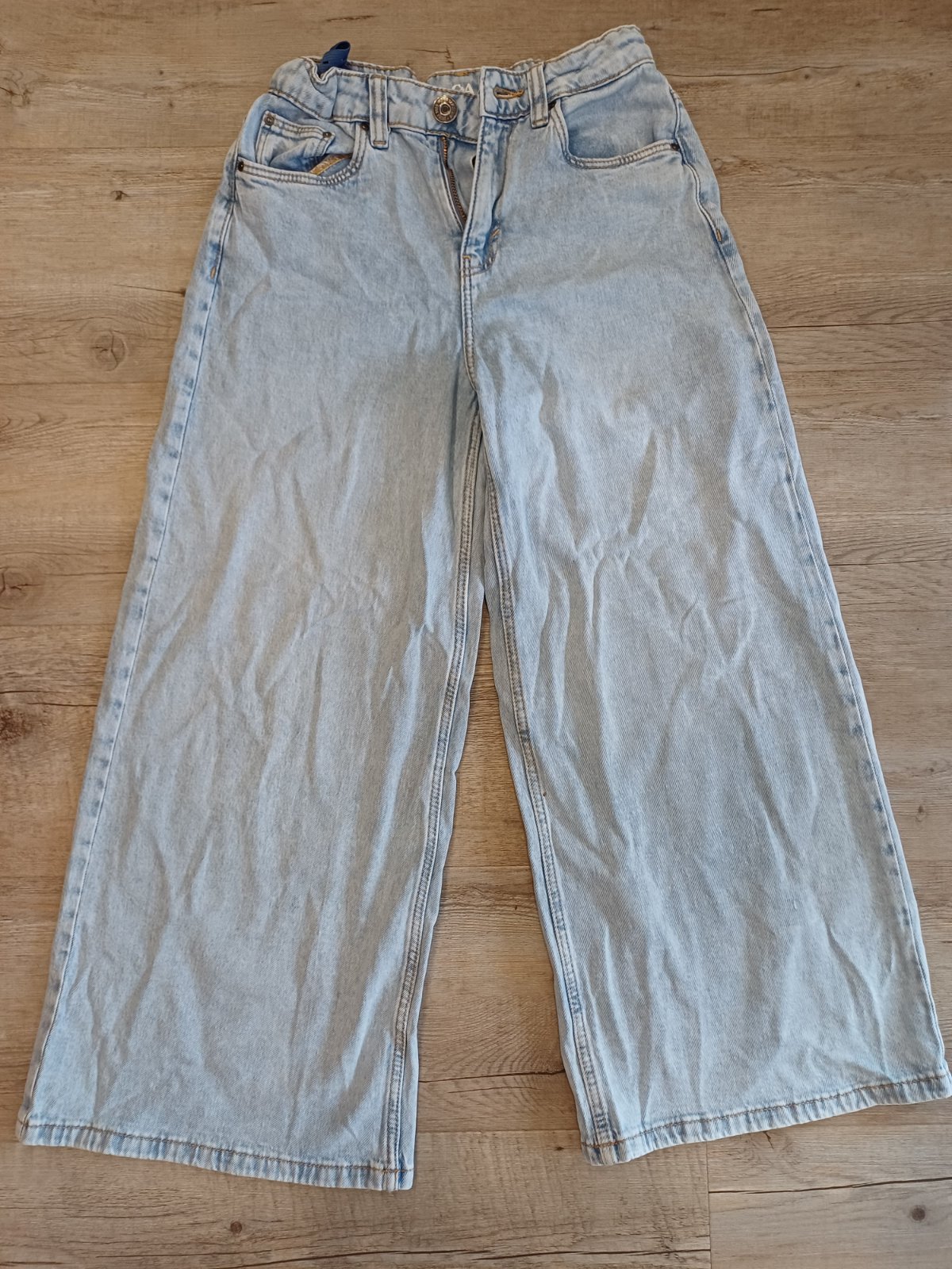 Krasne robia postavu, na zadku obsiahnuté,inak všade široké, spodky nevysuchane od podlahy, veľmi dobrý stav,v pase maju gumu na stiahnutie po oboch stranách
