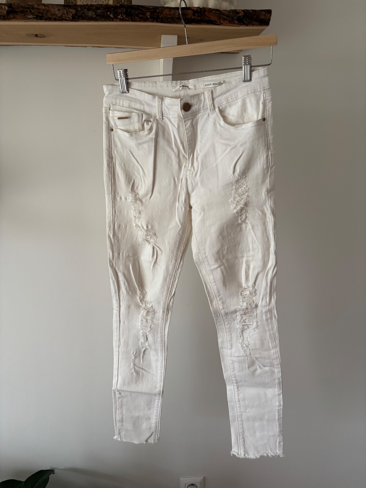Predam slusne nohavice, zapinanie na hacik, vo vnutri bol aj gombicek, ktory odpadol, sikovna zienka nebude mat problem si nejaky nasit, ak by ho potrebovala, lebo hacik bohato staci :)