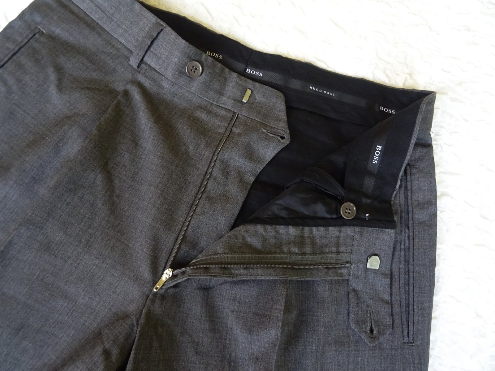 V ponuke sú dvoje pánske biznis nohavice, Hugo Boss, kolekcia Hooker, farba tmavošedá + stredne šedá. Veľkosť je 48, čo je S-ko.