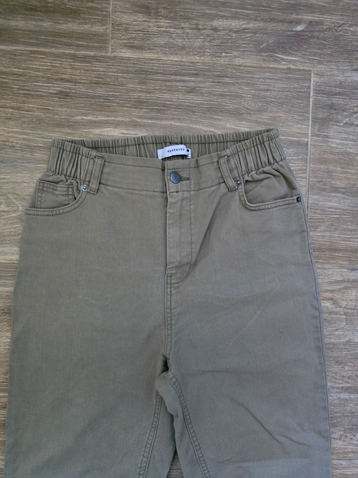 Rifle zn. Reserved, je to tenká riflovina. Boli minimálne nosené. Veľkosť EU36 - dĺžka 96cm, pás 2x35cm, boky 2x45cm. Poštovné obyčajne 1,20€ ( je na zodpovednosť kupujúceho, keďže neexistuje sled...