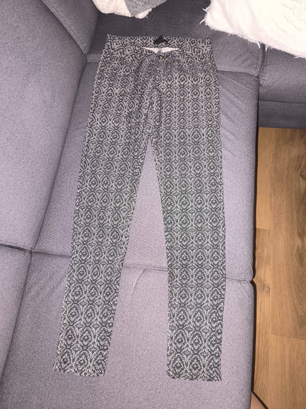 úplne super elegantné nohavice, dole rozširované..zažehlené na puky; na postave to vyzerá výborne; majú znížený pás; mala som ich len 2x, pretože po pôrode som sa do nich už nevošla