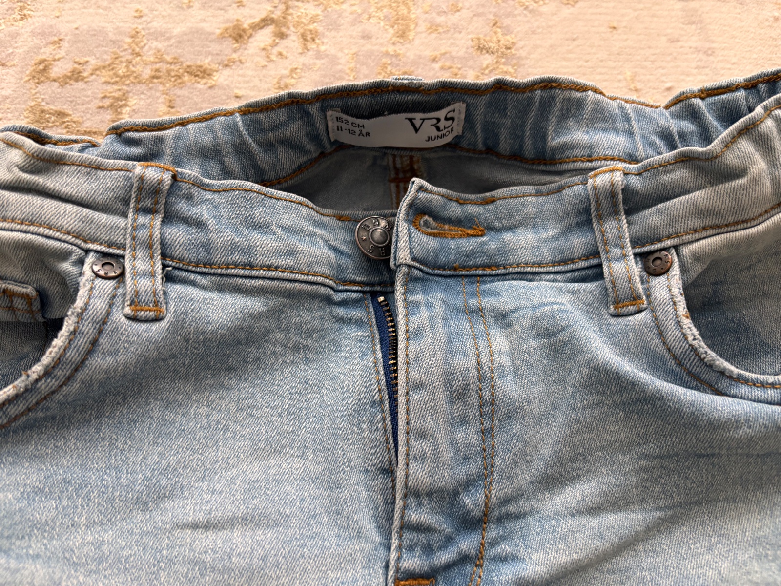 Krasne rifle, nosene, no v peknom stave. S gumickovym patentom s gombikmi na regulaciu pasu.