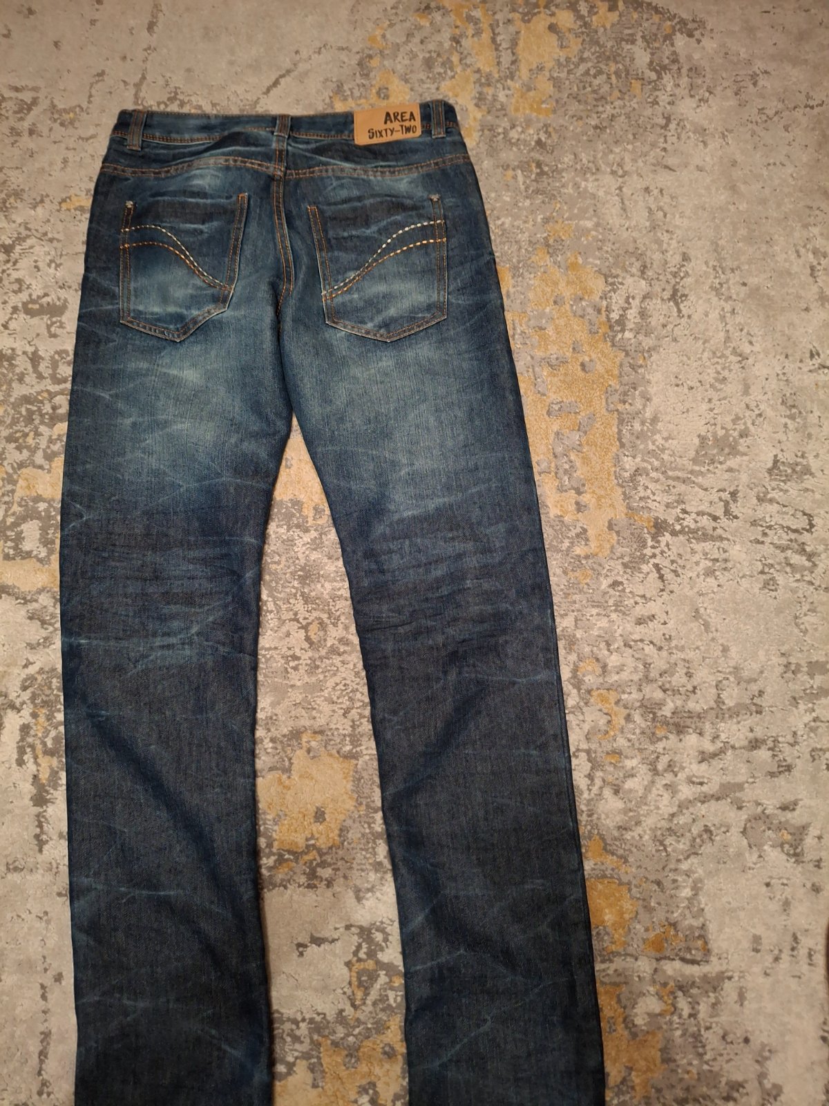 Rifle boi asi len 2-3 x oblečené, syn je zvyknutý na iný strih. Výrobcom určená velkost 164 . Velkova dlzka je 105 cm, vnútorná dĺžka je 79 cm. Šírka v pase 2 x 40 cm.