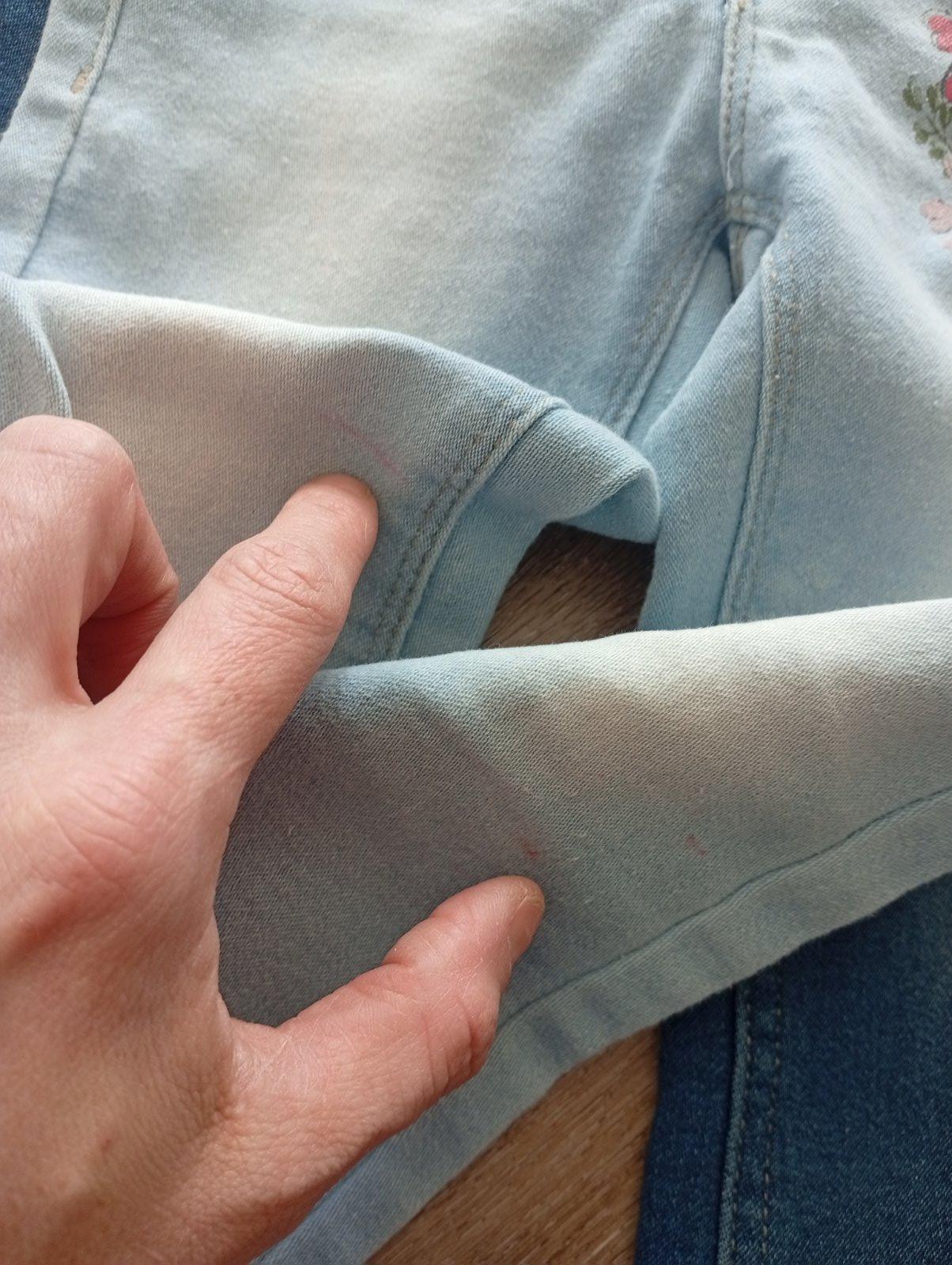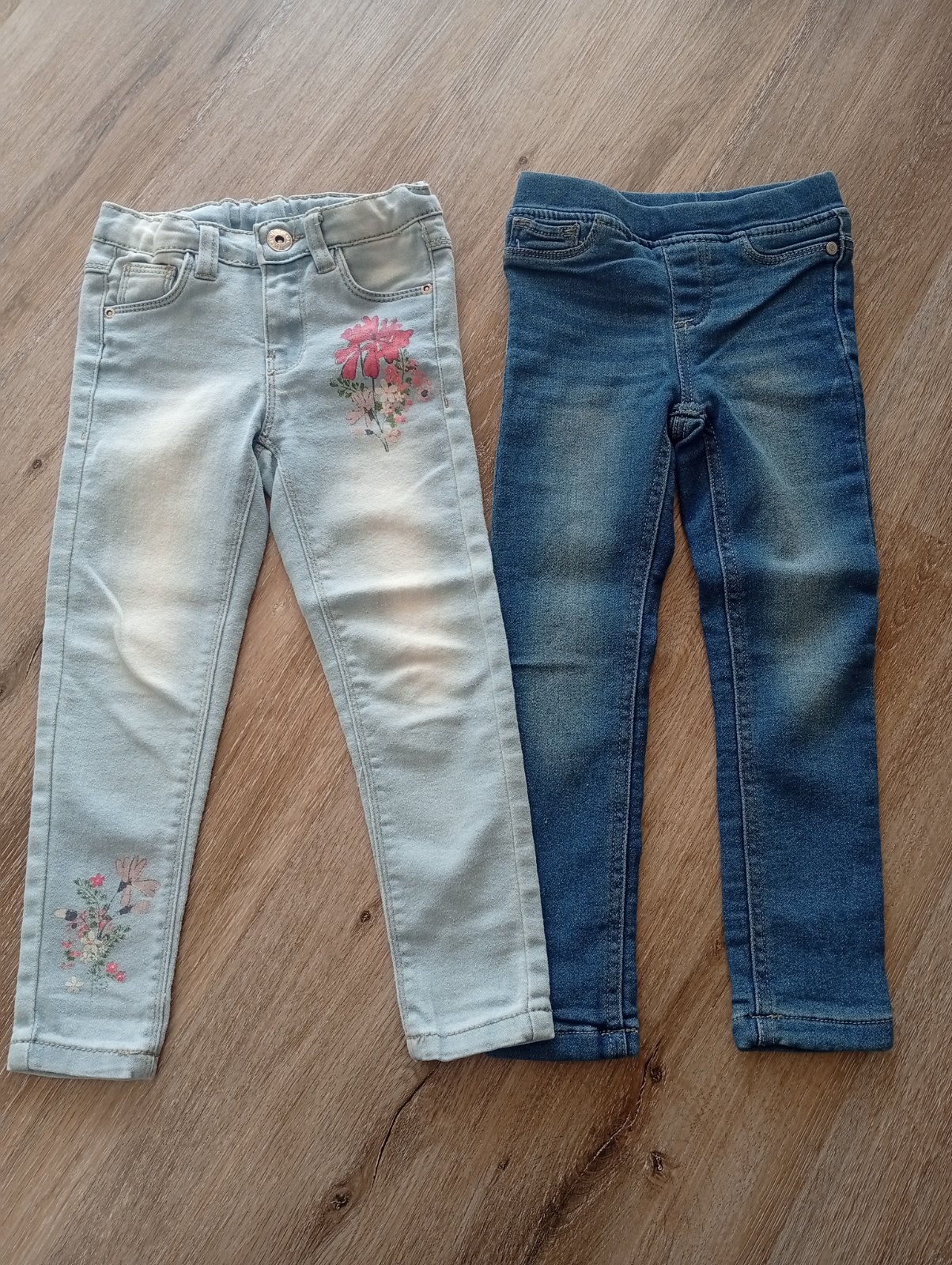 Nove skinny pepco rifle, este s visackou. Dostali sme ich a nepouzili ani raz. Su bledomodre s ruzovymi srdieckami