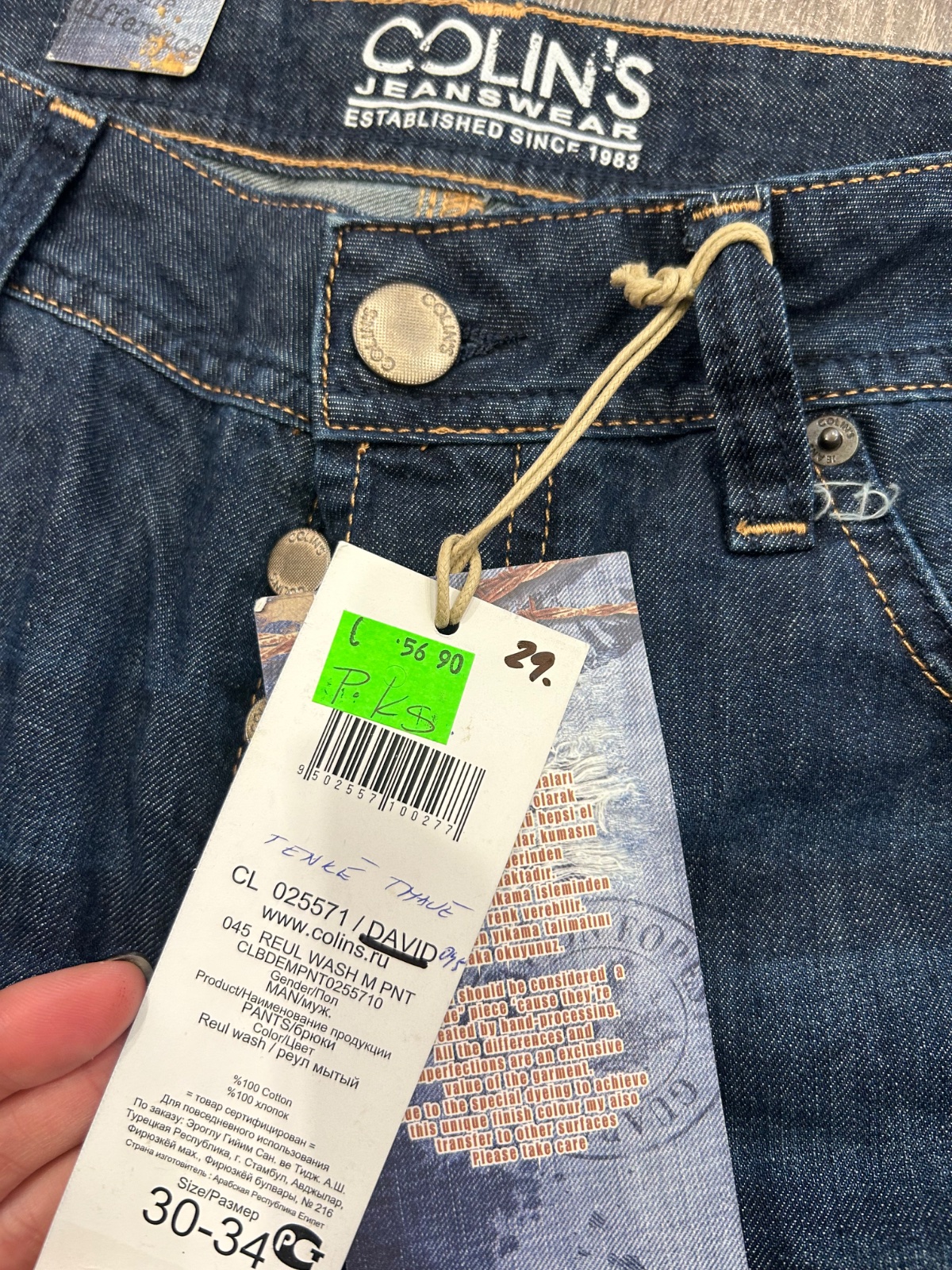 Colins nove panske rifle regular fit,velkost W30 L 34, dlzka je 109cm,sirka v pase je 41cm,predny sed je 26cm a zadny je 36cm