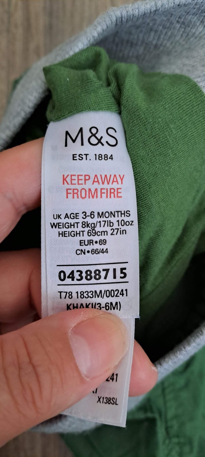 Ponúkam na predaj kvalitné a roztomilé nohavice Marks and Spencer (M&S) pre malých fešákov, veľkosť: 3-6 mesiacov (68 cm), zo skúseností až do 9 mesiacov. Vyteplené, vhodné na jeseň aj zimu, farba: tmavozelená. Cena 3€.