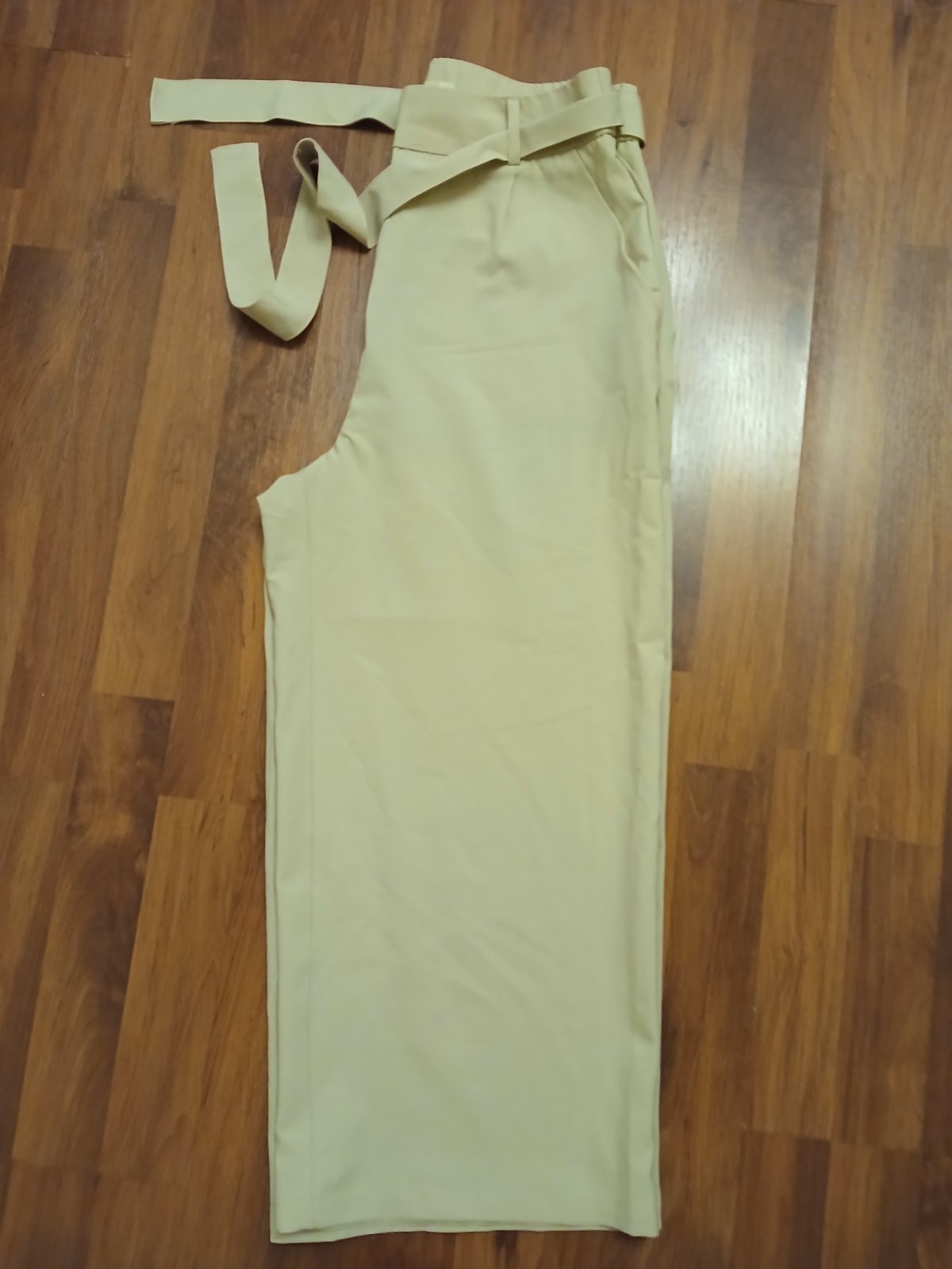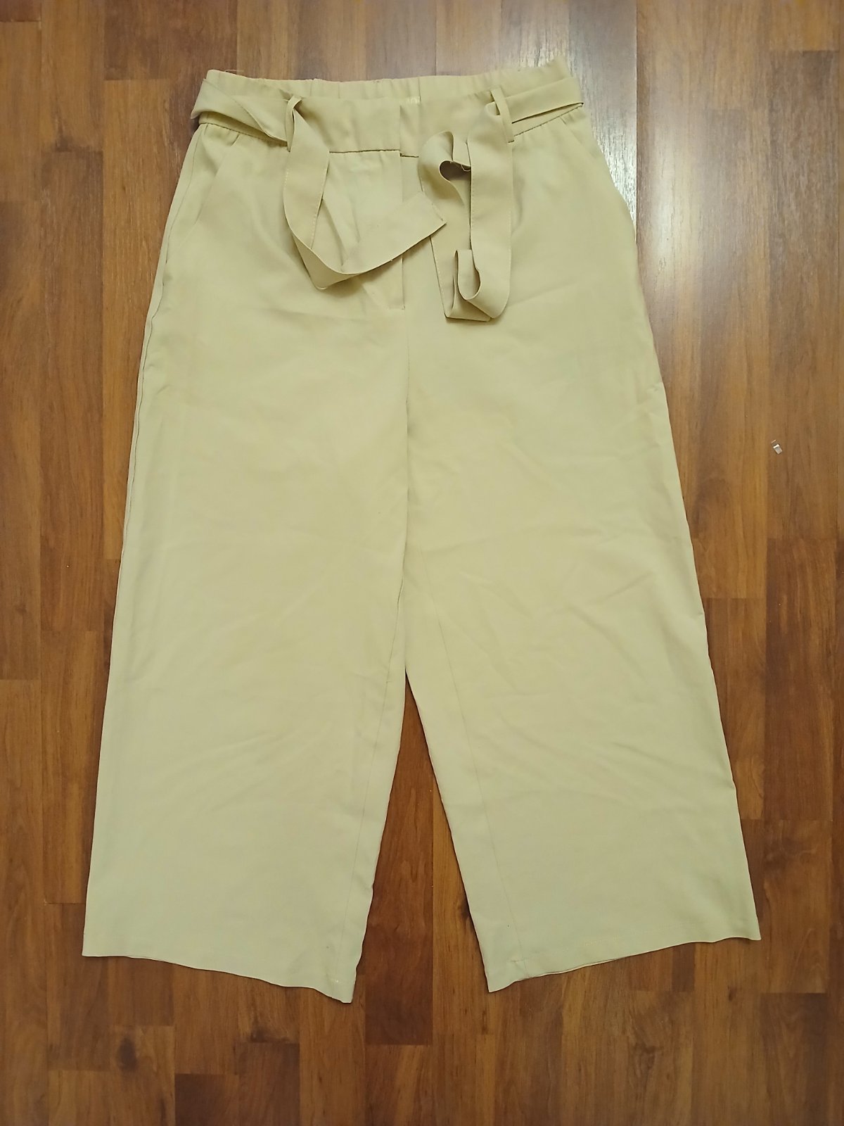 neznosené a veľmi kvalitné naturálne 7/8 nohavice,dolu malá manžetka,krásne vypracované,pekné detaily,bočné vrecká,krásna štruktúra materiálu,top stav a kvalita,v páse sa preväzujú opaskom - akoby ...