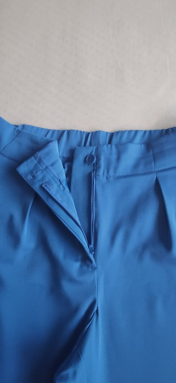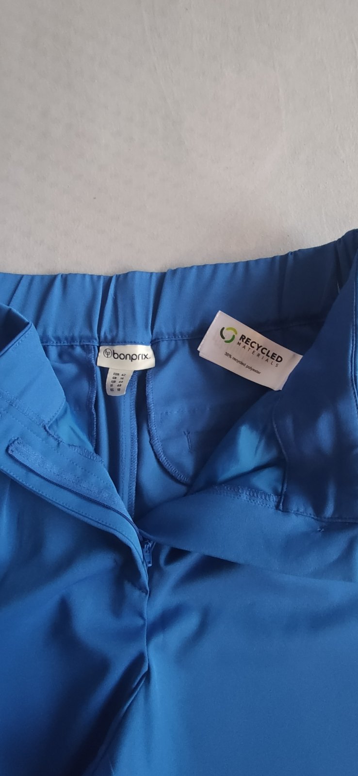 Predám krásne dámske nohavice. Boli iba raz oblečené. Sú výborného strihu. Veľmi kvalitný materiál. Farba krásna modrá. Zakúpené v Bonprixe. Veľkosť 42.