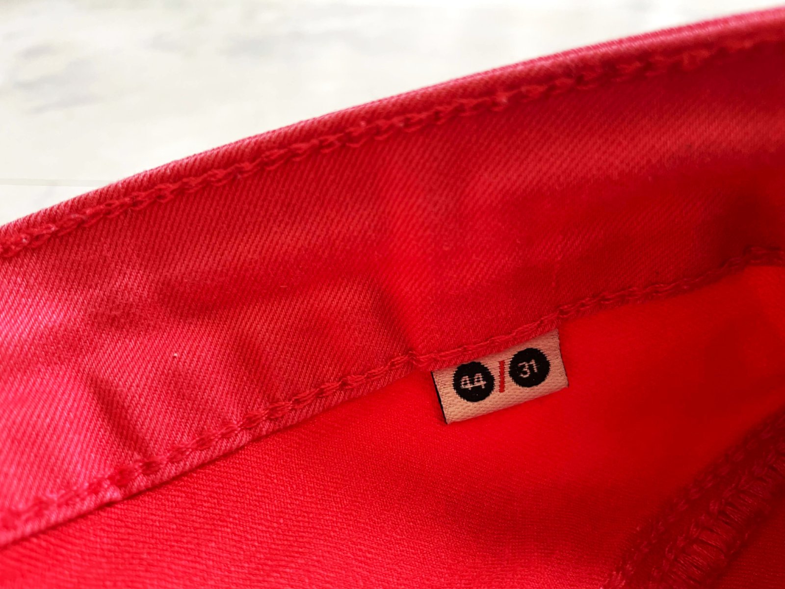 kvalitné jeans nohavice so strečom,krásna farba ružovočervená = tmavší odtieň lososovej,super sedia na postave,dajú sa pekne aj vyhrnúť na manžetku a budú 7/8 - super na leto,veľkosť 44 ( nafotená ),vyšší pás = 50 x 2 cm,predný sed = 27 cm,zadný sed = 42 cm,boky = 55 x 2 cm,dlžka = 104 cm, obvod stehna = 32 x 2 cm ( merané v kľude,ale poddá sa to,keďže sú elastické ) - perfektne sedia na postave