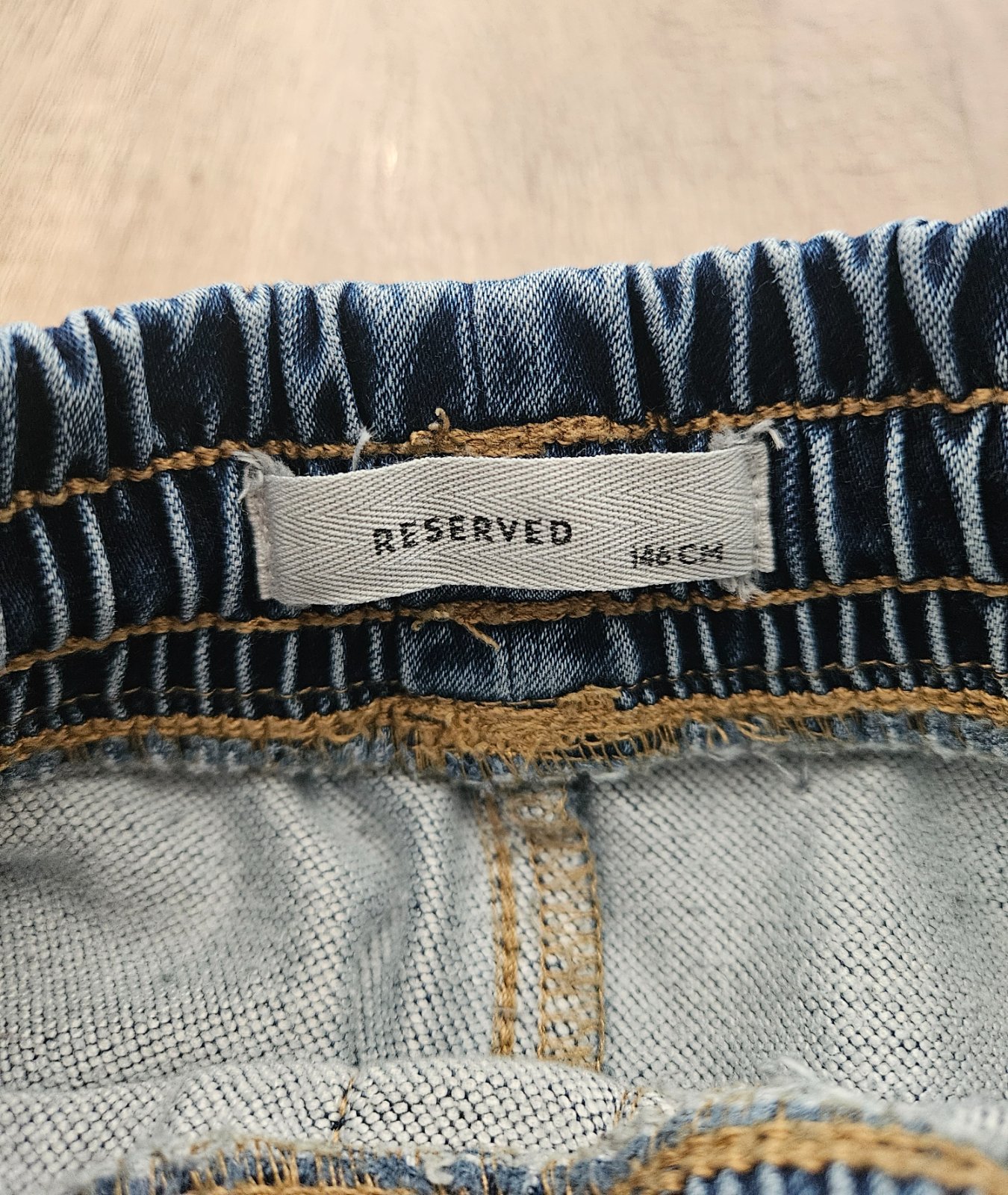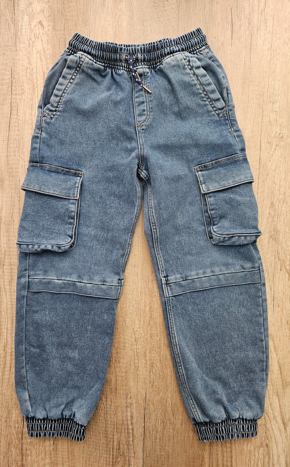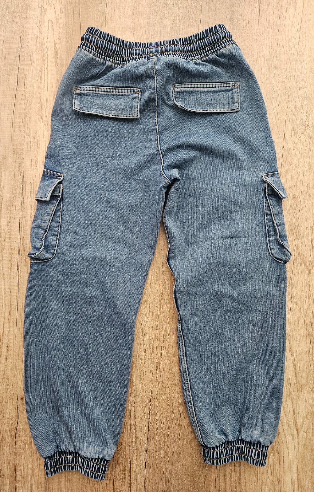 Širší strih, zadné vrecká nefunkčné. Pás 30 cm, dĺžka 84 cm.