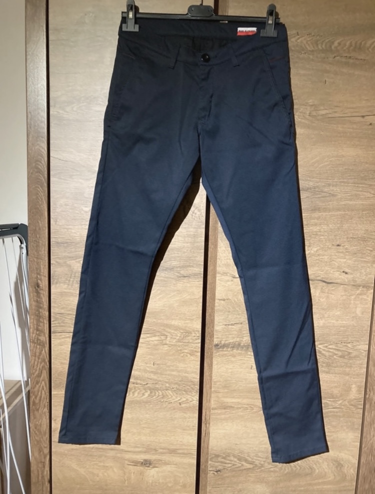Elegantne pánske nohavice. Asi 2x oblečene (na svadbe). Top stav. Vhodne pokojne aj k obleku. Nedá sa presne odfotiť farba. Je to úplne tmavá modrá, až do čierna. Už sú manželovi úzke. Veľkosť asi L.