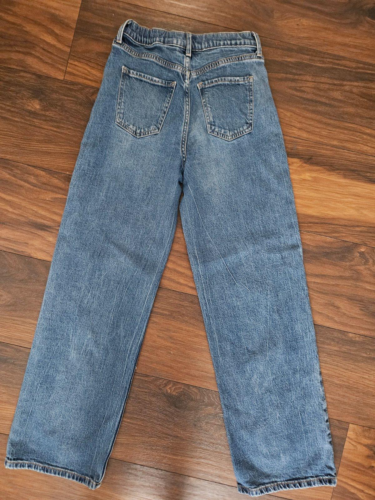 Ponúkam na predaj velmi málo nosené rifle z pohodlnej,mäkkej látky. Sú široké ale nie až privelmi a s gumičkou v páse. Su ako nové. Velkost písaná 158 ale su trosku kraršie,radšej zodpoveda velkosti 152. Dlžka na boku 97cm