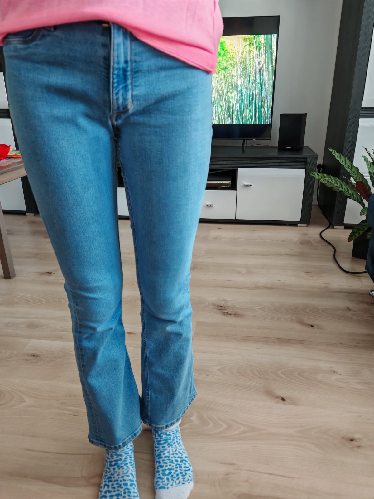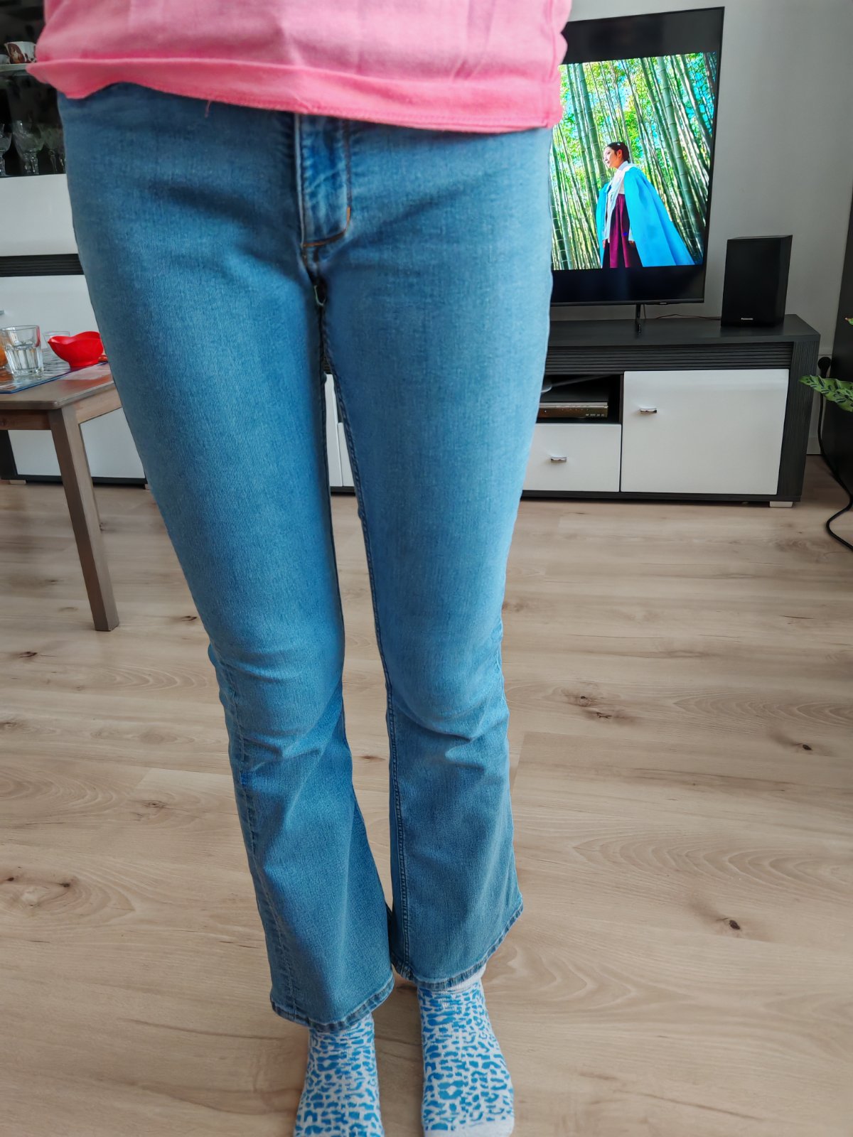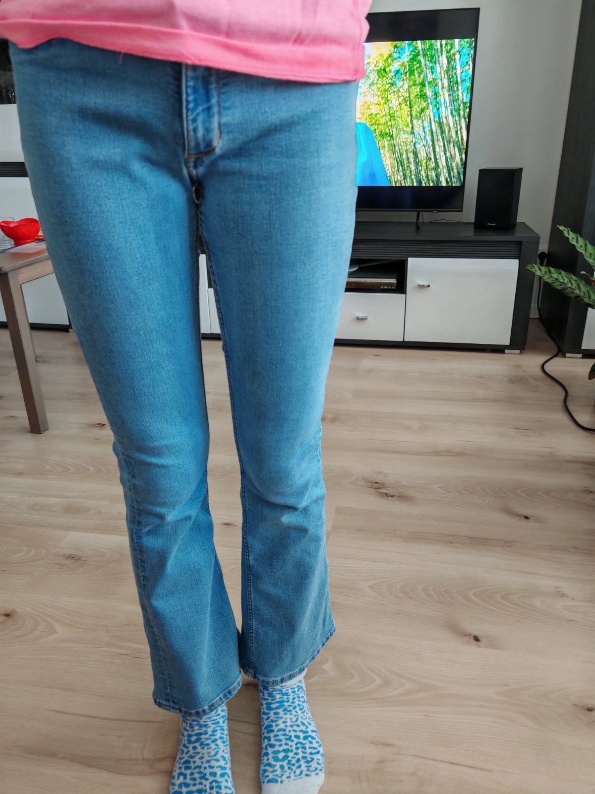 Predám krásne bledé, zvonove rifle H&M veľ.152.krasne, dcéra ich mala len 3 x.Mojej už su krátke už potrebuje dlhšie