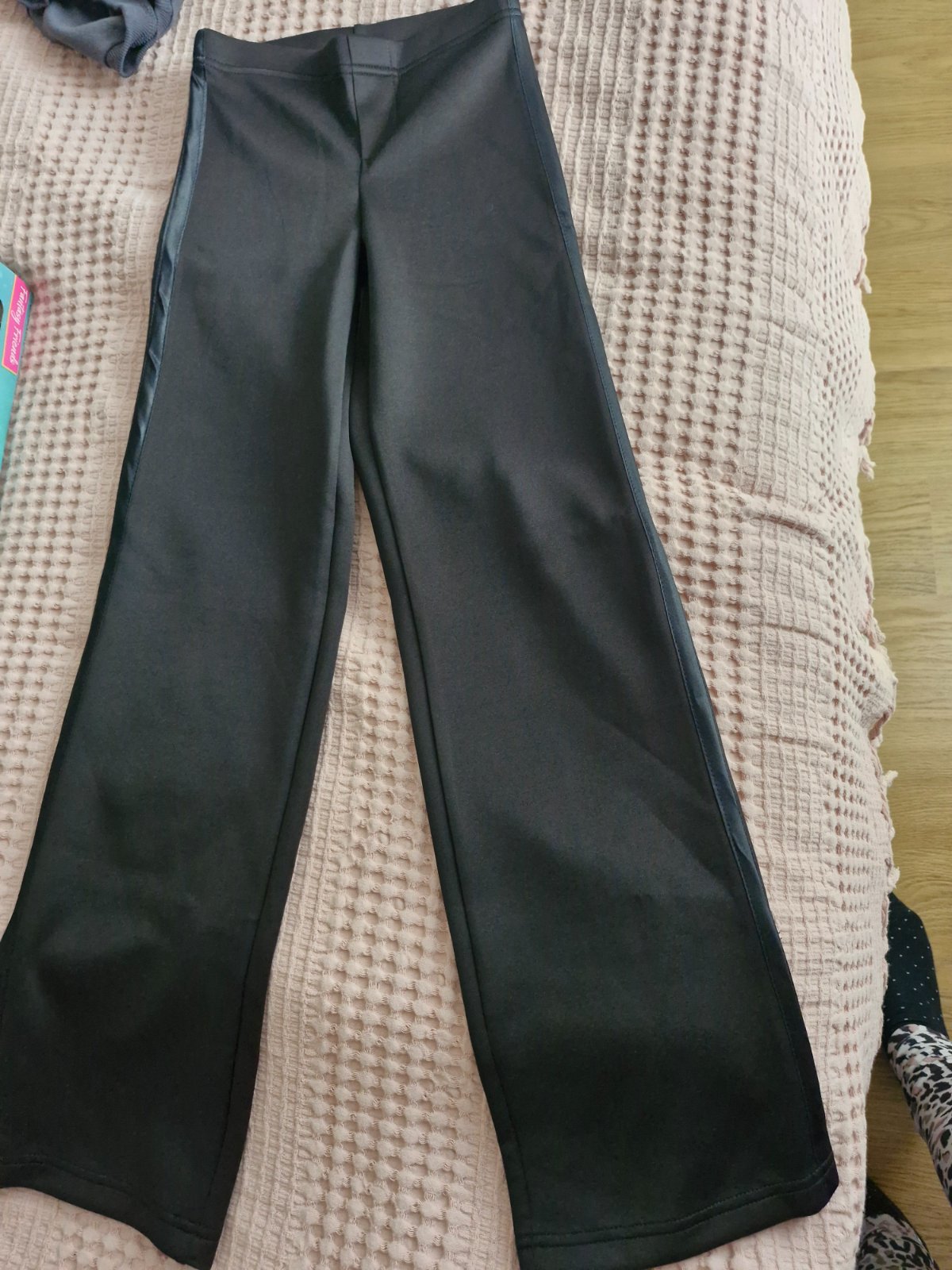 Nove, len oprane. Ide o original nohavice na latino tance v ramci spolocenskeho tancovania. Nezehlive. V pripade zaujmu mam aj uplne nove topanky.