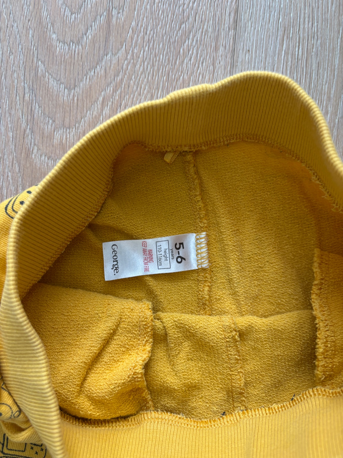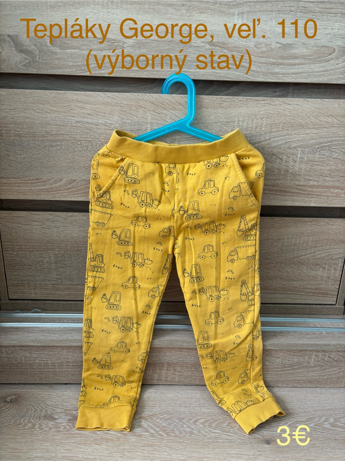 Krásne žlté tepláky s motívom autíčok, 2 bočné vrecká, pekná farba - zlto horčicová.